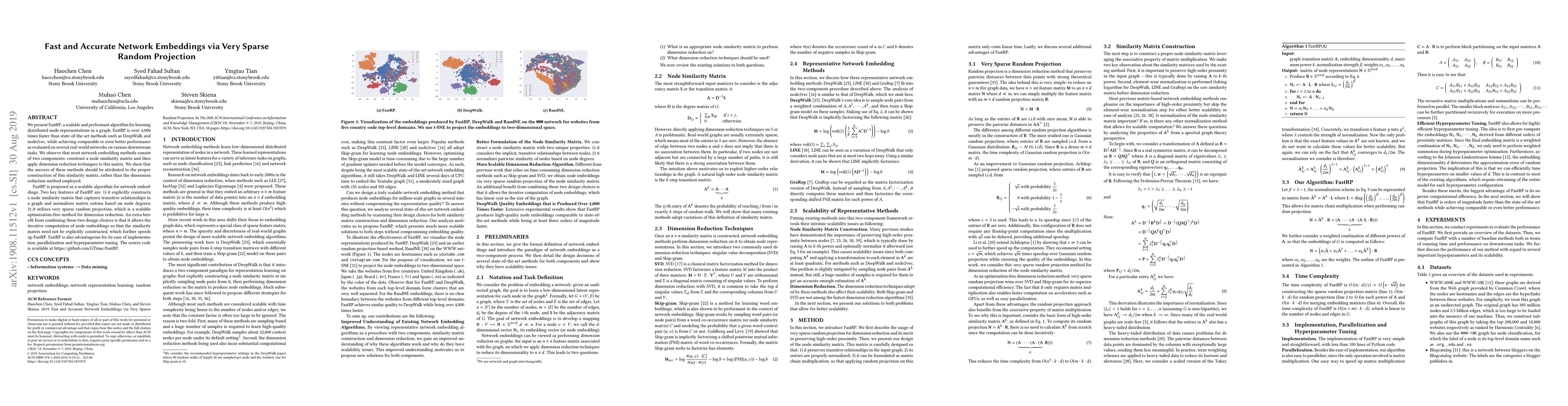 We present FastRP, a scalable and performant algorithm for learning distributed node representations in a graph. FastRP is over 4,000 times faster than state-of-the-art methods such as DeepWalk and node2vec, while achieving comparable or even better performance as evaluated on several real-world networks on various downstream tasks. We observe that most network embedding methods consist of two components: construct a node similarity matrix and then apply dimension reduction techniques to this matrix. We show that the success of these methods should be attributed to the proper construction of this similarity matrix, rather than the dimension reduction method employed. FastRP is proposed as a scalable algorithm for network embeddings. Two key features of FastRP are: 1) it explicitly constructs a node similarity matrix that captures transitive relationships in a graph and normalizes matrix entries based on node degrees; 2) it utilizes very sparse random projection, which is a scalable optimization-free method for dimension reduction. An extra benefit from combining these two design choices is that it allows the iterative computation of node embeddings so that the similarity matrix need not be explicitly constructed, which further speeds up FastRP. FastRP is also advantageous for its ease of implementation, parallelization and hyperparameter tuning. The source code is available at https://github.com/GTmac/FastRP.