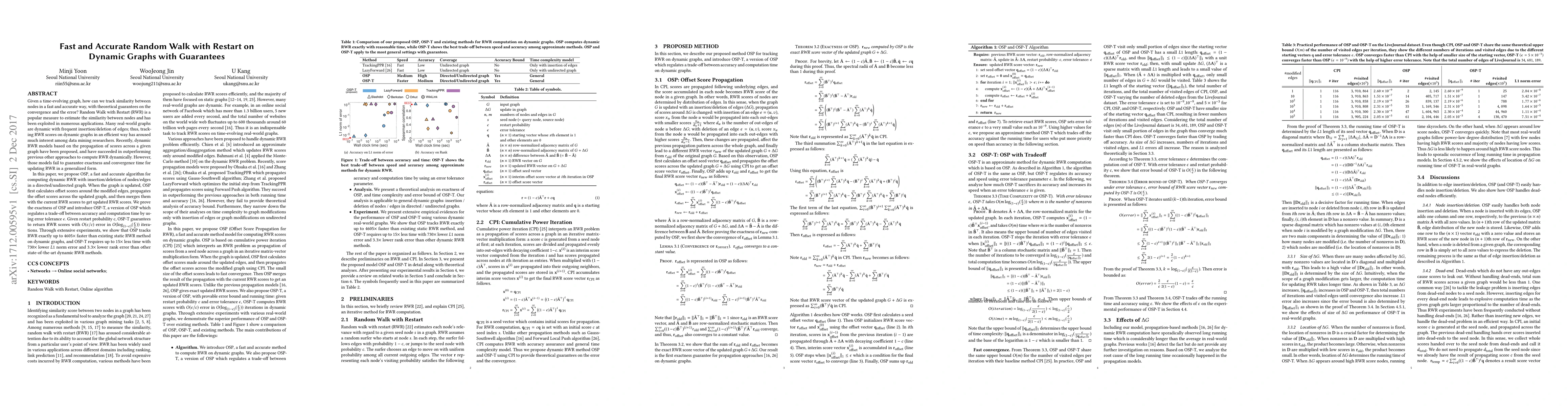 Given a time-evolving graph, how can we track similarity between nodes in a fast and accurate way, with theoretical guarantees on the convergence and the error? Random Walk with Restart (RWR) is a popular measure to estimate the similarity between nodes and has been exploited in numerous applications. Many real-world graphs are dynamic with frequent insertion/deletion of edges; thus, tracking RWR scores on dynamic graphs in an efficient way has aroused much interest among data mining researchers. Recently, dynamic RWR models based on the propagation of scores across a given graph have been proposed, and have succeeded in outperforming previous other approaches to compute RWR dynamically. However, those models fail to guarantee exactness and convergence time for updating RWR in a generalized form. In this paper, we propose OSP, a fast and accurate algorithm for computing dynamic RWR with insertion/deletion of nodes/edges in a directed/undirected graph. When the graph is updated, OSP first calculates offset scores around the modified edges, propagates the offset scores across the updated graph, and then merges them with the current RWR scores to get updated RWR scores. We prove the exactness of OSP and introduce OSP-T, a version of OSP which regulates a trade-off between accuracy and computation time by using error tolerance {\epsilon}. Given restart probability c, OSP-T guarantees to return RWR scores with O ({\epsilon} /c ) error in O (log ({\epsilon}/2)/log(1-c)) iterations. Through extensive experiments, we show that OSP tracks RWR exactly up to 4605x faster than existing static RWR method on dynamic graphs, and OSP-T requires up to 15x less time with 730x lower L1 norm error and 3.3x lower rank error than other state-of-the-art dynamic RWR methods.