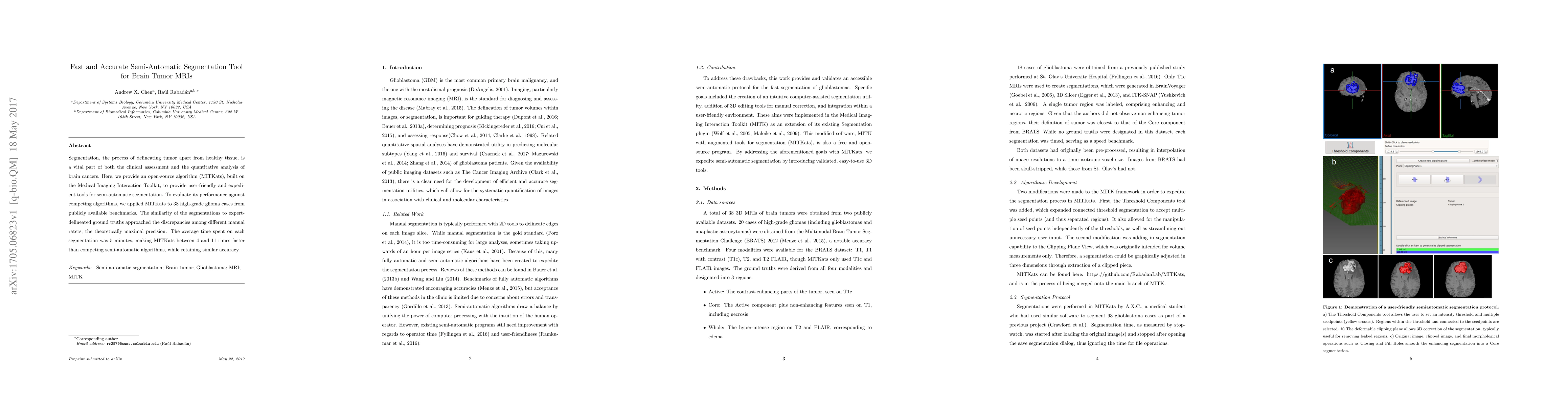 Segmentation, the process of delineating tumor apart from healthy tissue, is a vital part of both the clinical assessment and the quantitative analysis of brain cancers. Here, we provide an open-source algorithm (MITKats), built on the Medical Imaging Interaction Toolkit, to provide user-friendly and expedient tools for semi-automatic segmentation. To evaluate its performance against competing algorithms, we applied MITKats to 38 high-grade glioma cases from publicly available benchmarks. The similarity of the segmentations to expert-delineated ground truths approached the discrepancies among different manual raters, the theoretically maximal precision. The average time spent on each segmentation was 5 minutes, making MITKats between 4 and 11 times faster than competing semi-automatic algorithms, while retaining similar accuracy.