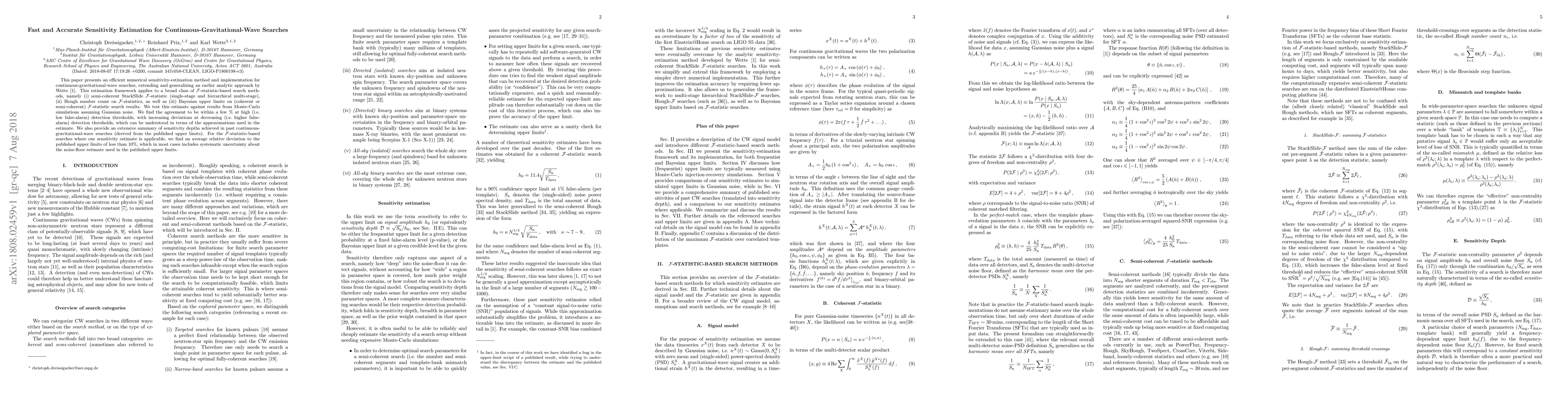 This paper presents an efficient numerical sensitivity-estimation method and implementation for continuous-gravitational-wave searches, extending and generalizing an earlier analytic approach by Wette [1]. This estimation framework applies to a broad class of F-statistic-based search meth- ods, namely (i) semi-coherent StackSlide F-statistic (single-stage and hierarchical multi-stage), (ii) Hough number count on F-statistics, as well as (iii) Bayesian upper limits on (coherent or semi-coherent) F-statistic search results. We test this estimate against results from Monte-Carlo simulations assuming Gaussian noise. We find the agreement to be within a few % at high (i.e. low false-alarm) detection thresholds, with increasing deviations at decreasing (i.e. higher false- alarm) detection thresholds, which can be understood in terms of the approximations used in the estimate. We also provide an extensive summary of sensitivity depths achieved in past continuous- gravitational-wave searches (derived from the published upper limits). For the F-statistic-based searches where our sensitivity estimate is applicable, we find an average relative deviation to the published upper limits of less than 10%, which in most cases includes systematic uncertainty about the noise-floor estimate used in the published upper limits.