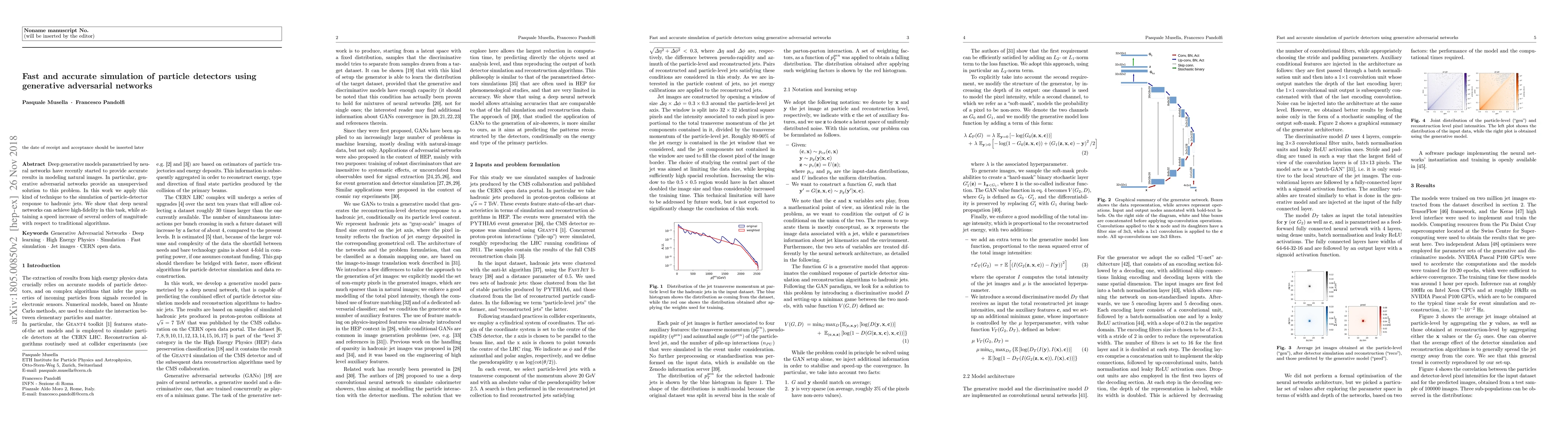 This paper demonstrates that generative adversarial networks can simulate particle detectors with high accuracy and significantly faster speeds compared to traditional methods, leveraging deep neural networks for efficient modeling of particle-detector responses to hadronic jets.
