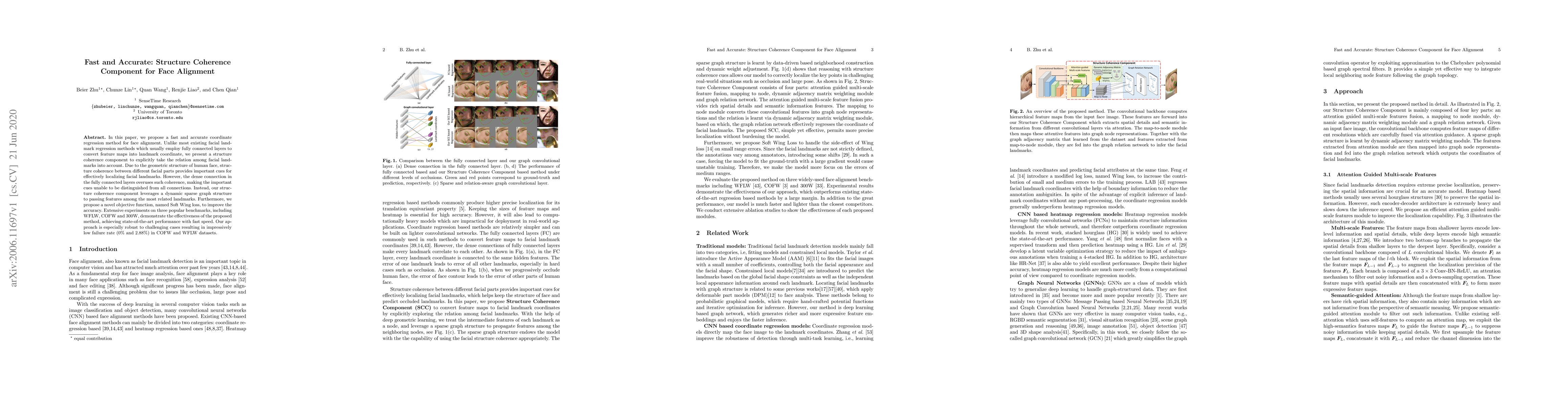 In this paper, we propose a fast and accurate coordinate regression method for face alignment. Unlike most existing facial landmark regression methods which usually employ fully connected layers to convert feature maps into landmark coordinate, we present a structure coherence component to explicitly take the relation among facial landmarks into account. Due to the geometric structure of human face, structure coherence between different facial parts provides important cues for effectively localizing facial landmarks. However, the dense connection in the fully connected layers overuses such coherence, making the important cues unable to be distinguished from all connections. Instead, our structure coherence component leverages a dynamic sparse graph structure to passing features among the most related landmarks. Furthermore, we propose a novel objective function, named Soft Wing loss, to improve the accuracy. Extensive experiments on three popular benchmarks, including WFLW, COFW and 300W, demonstrate the effectiveness of the proposed method, achieving state-of-the-art performance with fast speed. Our approach is especially robust to challenging cases resulting in impressively low failure rate (0% and 2.88%) in COFW and WFLW datasets.