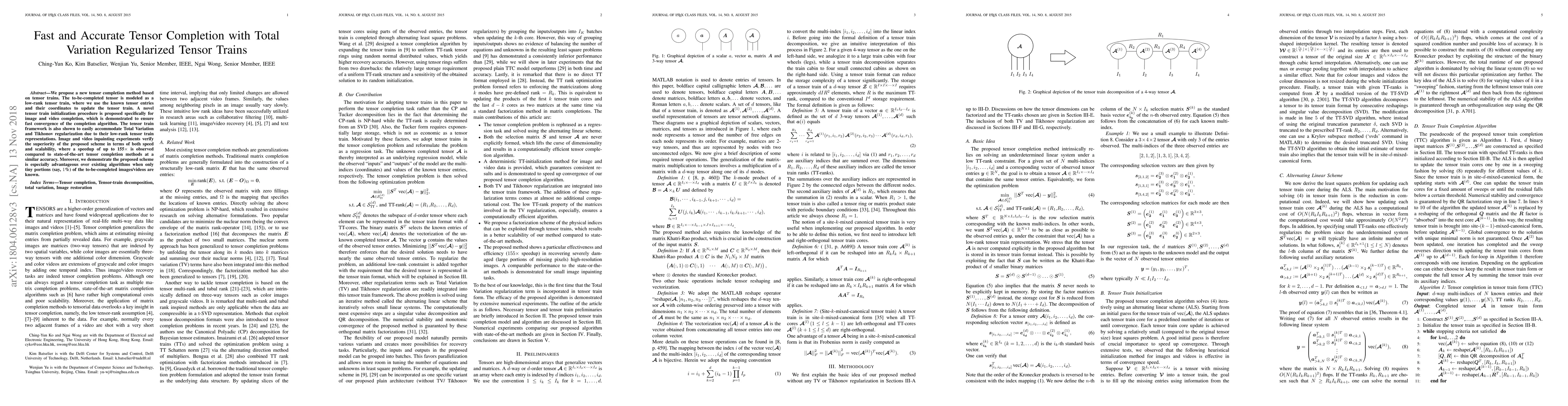 This paper introduces a fast and accurate tensor completion method using tensor trains with Total Variation regularization, achieving up to 155X speedup over existing methods. The proposed tensor train initialization ensures rapid convergence, and the framework accommodates various regularizations, demonstrating superior performance in image and video completion.