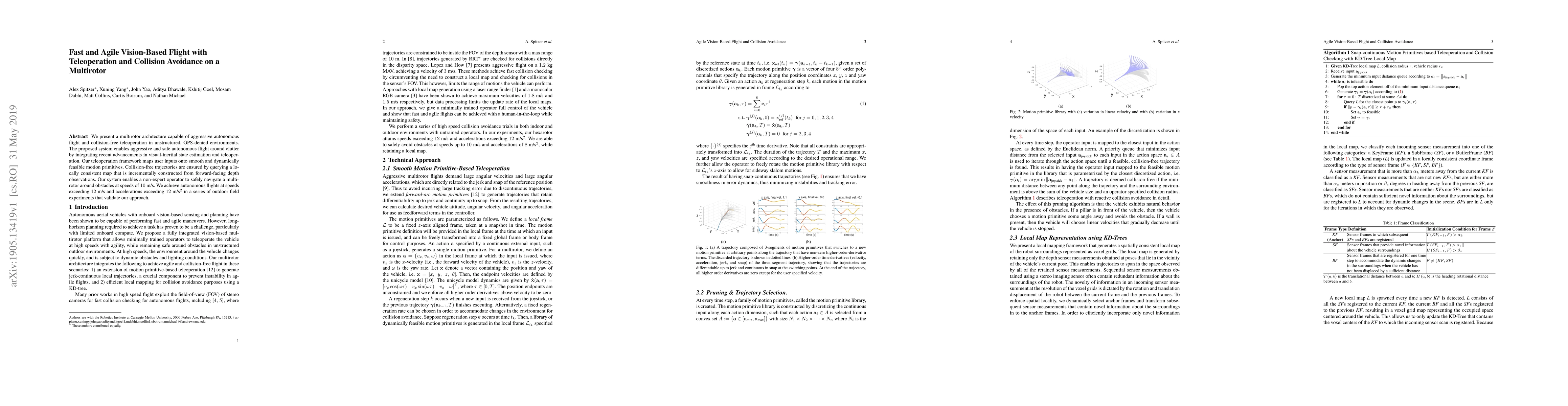 This paper introduces a multirotor system for fast and agile autonomous flight with teleoperation and collision avoidance in GPS-denied environments, validated by outdoor experiments demonstrating speeds over 12 m/s and accelerations over 12 m/s², ensuring safe navigation through clutter.