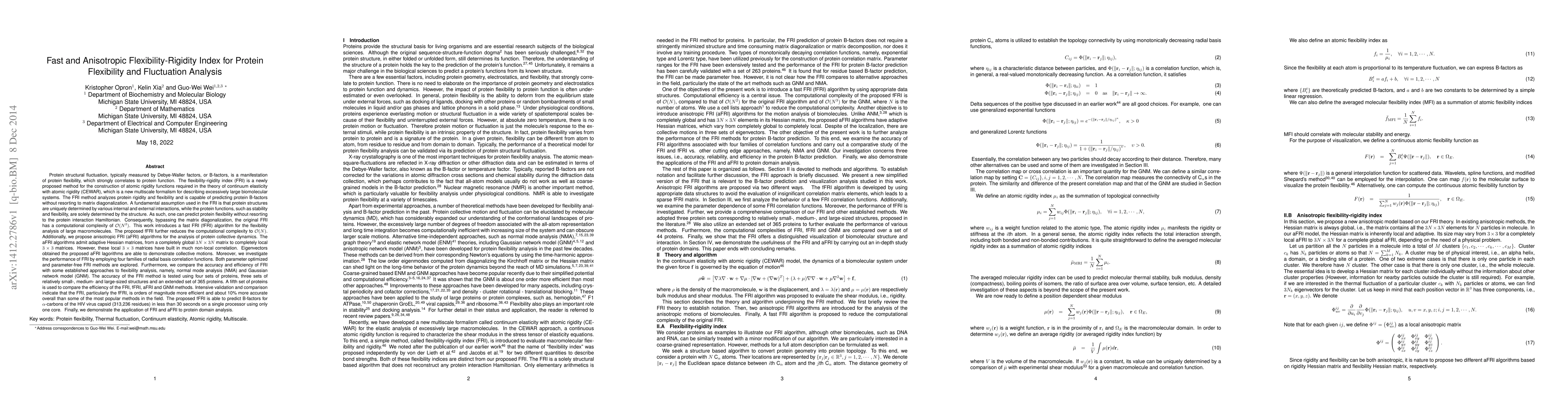 The paper introduces a fast and anisotropic flexibility-rigidity index (fFRI) algorithm for analyzing protein flexibility, reducing computational complexity to O(N) and enabling efficient prediction of protein B-factors without matrix diagonalization. The anisotropic FRI (aFRI) further refines analysis with adaptive Hessian matrices, showing improved efficiency and accuracy compared to established methods like NMA and GNM.