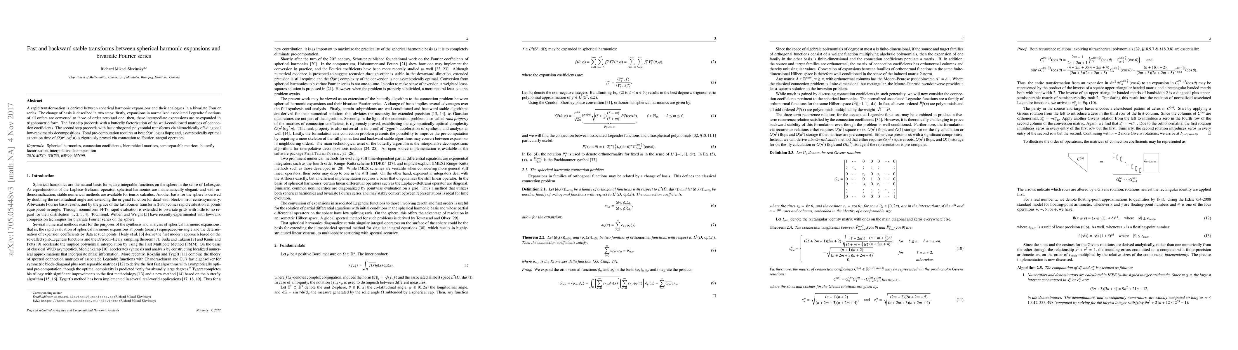This paper presents a fast and backward stable transformation between spherical harmonic expansions and bivariate Fourier series, utilizing butterfly factorization and hierarchically off-diagonal low-rank matrix decompositions. The transformation achieves an optimal execution time of $\mathcal{O}(n^2\log^2 n)$ and requires $\mathcal{O}(n^3\log n)$ pre-computation.