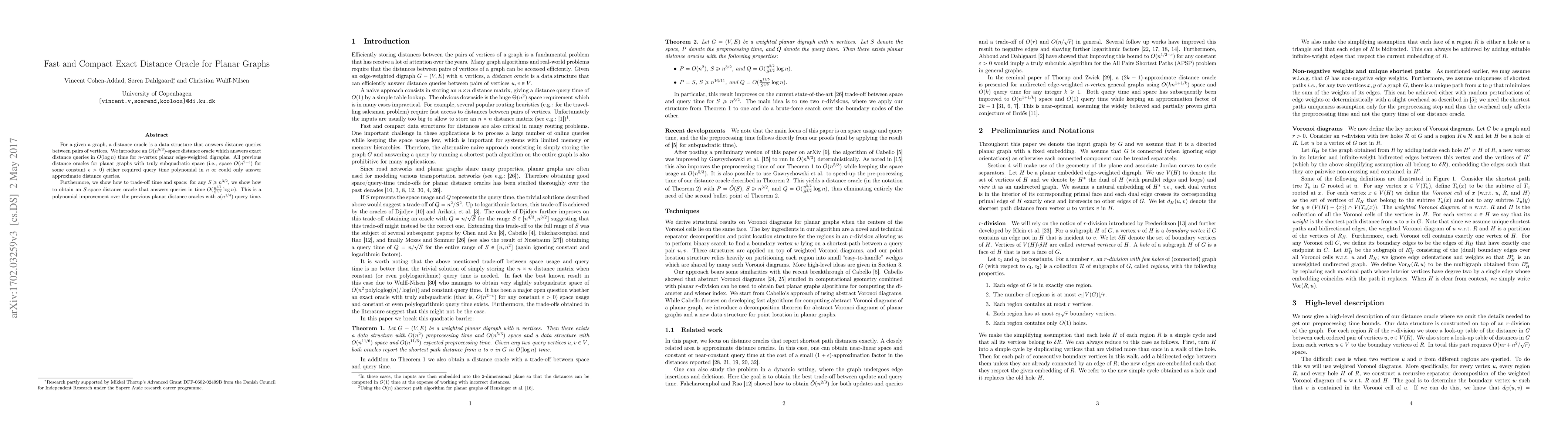This paper presents an $O(n^{5/3})$-space distance oracle for planar graphs that answers exact distance queries in $O(\log n)$ time, significantly improving upon previous oracles that either required higher space or provided only approximate distances. Additionally, it offers a trade-off between space and query time, achieving polynomial improvements over prior methods.
