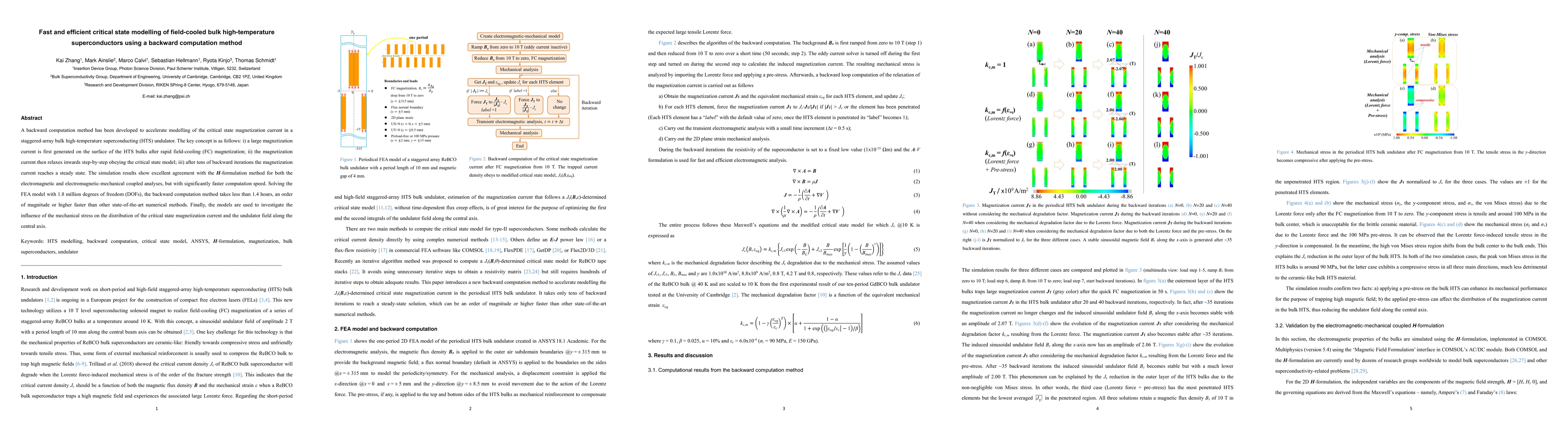 This paper introduces a backward computation method for rapidly modelling the critical state magnetization current in high-temperature superconducting bulks. The method significantly accelerates simulations compared to traditional techniques, achieving results in less than 1.4 hours for models with 1.8 million degrees of freedom.
