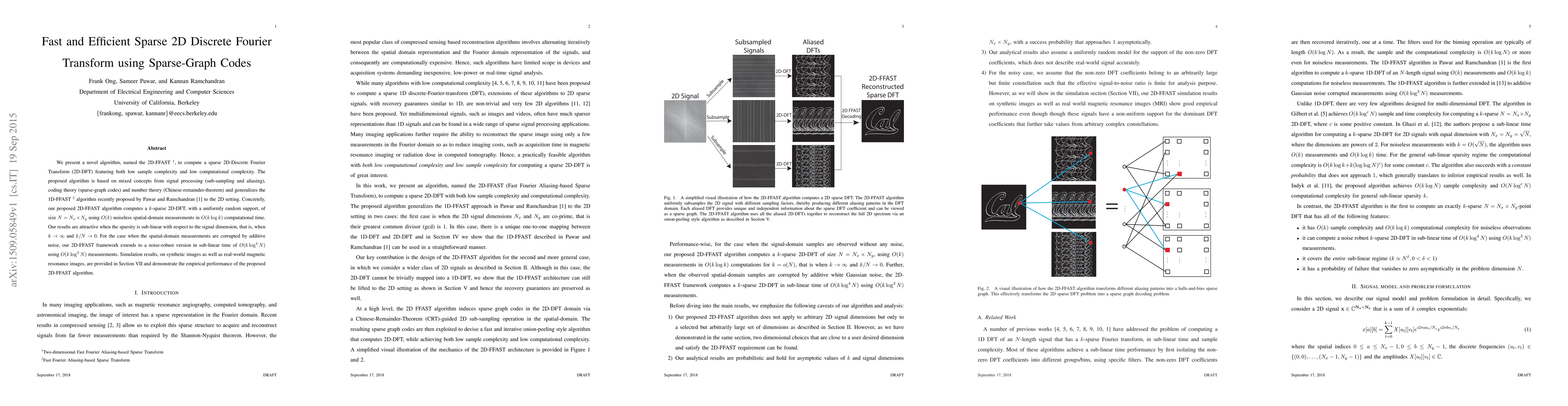 We present a novel algorithm, named the 2D-FFAST, to compute a sparse 2D-Discrete Fourier Transform (2D-DFT) featuring both low sample complexity and low computational complexity. The proposed algorithm is based on mixed concepts from signal processing (sub-sampling and aliasing), coding theory (sparse-graph codes) and number theory (Chinese-remainder-theorem) and generalizes the 1D-FFAST 2 algorithm recently proposed by Pawar and Ramchandran [1] to the 2D setting. Concretely, our proposed 2D-FFAST algorithm computes a k-sparse 2D-DFT, with a uniformly random support, of size N = Nx x Ny using O(k) noiseless spatial-domain measurements in O(k log k) computational time. Our results are attractive when the sparsity is sub-linear with respect to the signal dimension, that is, when k -> infinity and k/N -> 0. For the case when the spatial-domain measurements are corrupted by additive noise, our 2D-FFAST framework extends to a noise-robust version in sub-linear time of O(k log4 N ) using O(k log3 N ) measurements. Simulation results, on synthetic images as well as real-world magnetic resonance images, are provided in Section VII and demonstrate the empirical performance of the proposed 2D-FFAST algorithm.