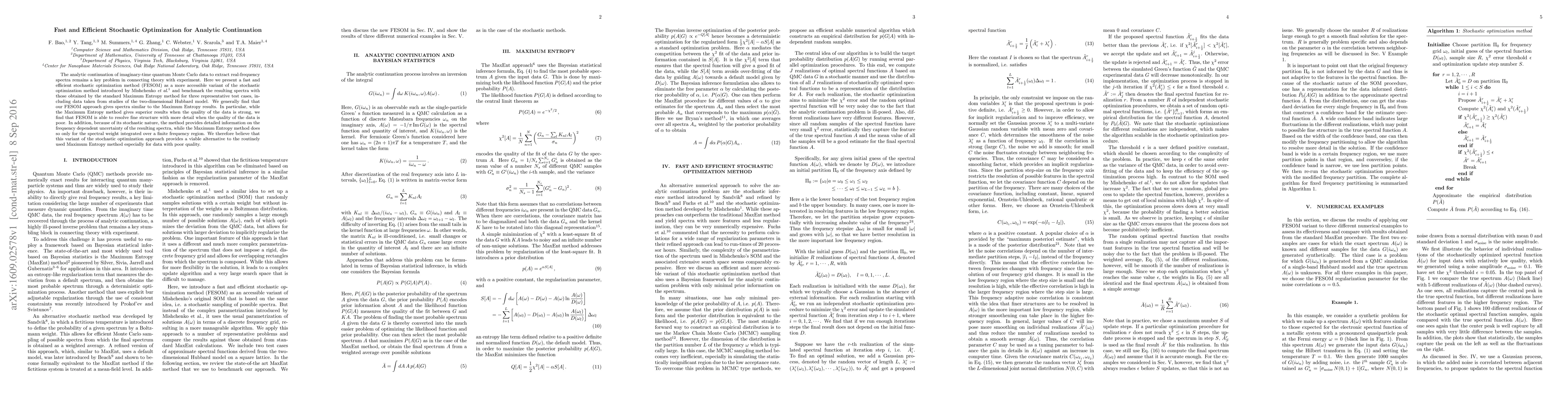 This paper introduces a fast and efficient stochastic optimization method (FESOM) for analytic continuation of quantum Monte Carlo data, demonstrating its effectiveness compared to the Maximum Entropy method, especially for low-quality data, and highlighting its ability to provide detailed uncertainty information.