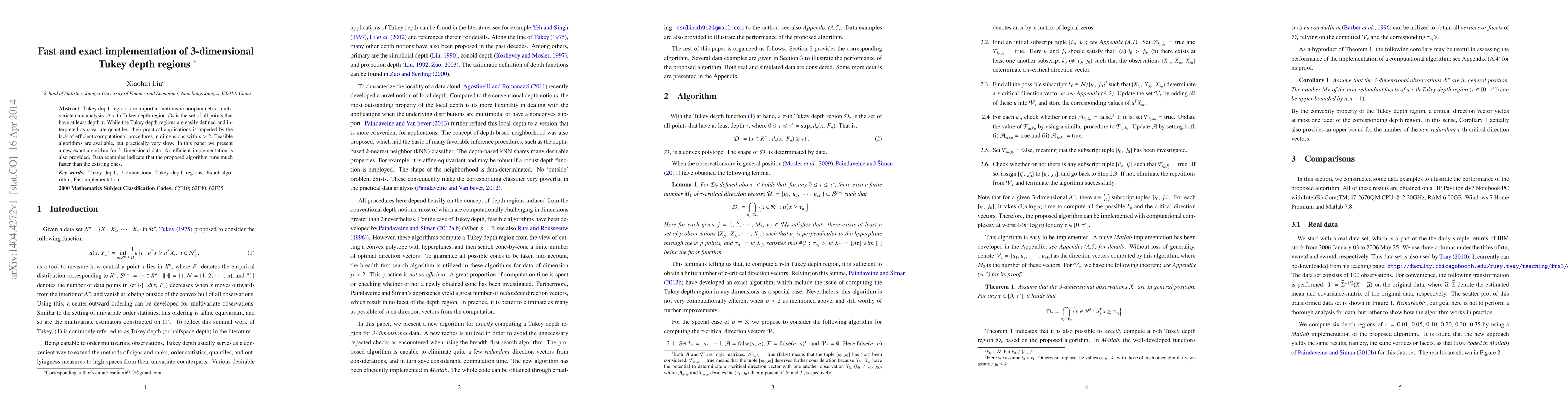 This paper introduces a new exact algorithm for computing 3-dimensional Tukey depth regions, significantly improving computational efficiency over existing methods. The proposed implementation runs faster, addressing the practical challenges of applying these regions in higher dimensions.