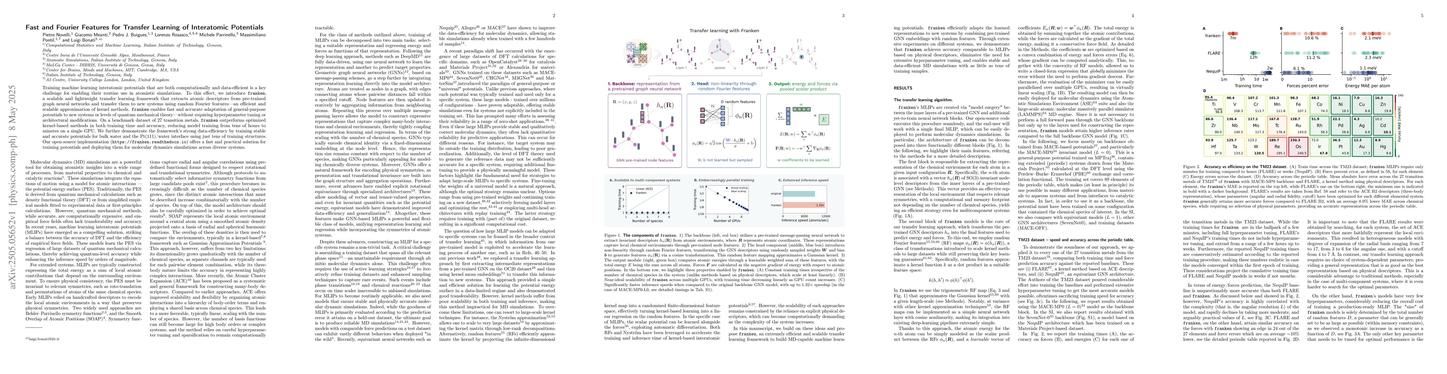 The research introduces franken, a transfer learning framework that extracts atomic descriptors from pretrained graph neural networks using random Fourier features, enabling fast adaptation of potentials to new systems without hyperparameter tuning or architectural modifications.