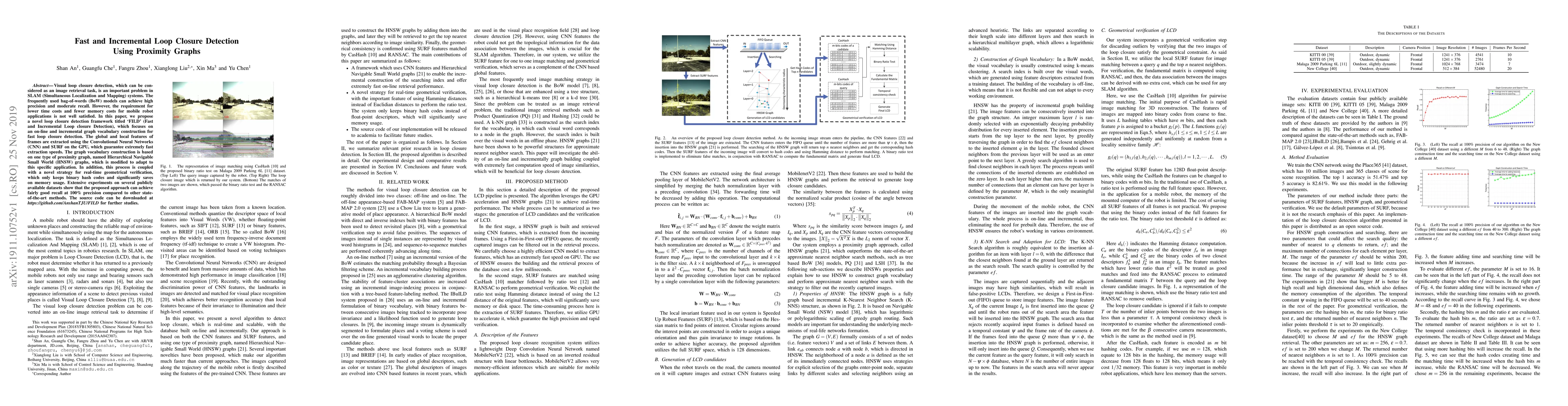 Visual loop closure detection, which can be considered as an image retrieval task, is an important problem in SLAM (Simultaneous Localization and Mapping) systems. The frequently used bag-of-words (BoW) models can achieve high precision and moderate recall. However, the requirement for lower time costs and fewer memory costs for mobile robot applications is not well satisfied. In this paper, we propose a novel loop closure detection framework titled `FILD' (Fast and Incremental Loop closure Detection), which focuses on an on-line and incremental graph vocabulary construction for fast loop closure detection. The global and local features of frames are extracted using the Convolutional Neural Networks (CNN) and SURF on the GPU, which guarantee extremely fast extraction speeds. The graph vocabulary construction is based on one type of proximity graph, named Hierarchical Navigable Small World (HNSW) graphs, which is modified to adapt to this specific application. In addition, this process is coupled with a novel strategy for real-time geometrical verification, which only keeps binary hash codes and significantly saves on memory usage. Extensive experiments on several publicly available datasets show that the proposed approach can achieve fairly good recall at 100\% precision compared to other state-of-the-art methods. The source code can be downloaded at https://github.com/AnshanTJU/FILD for further studies.