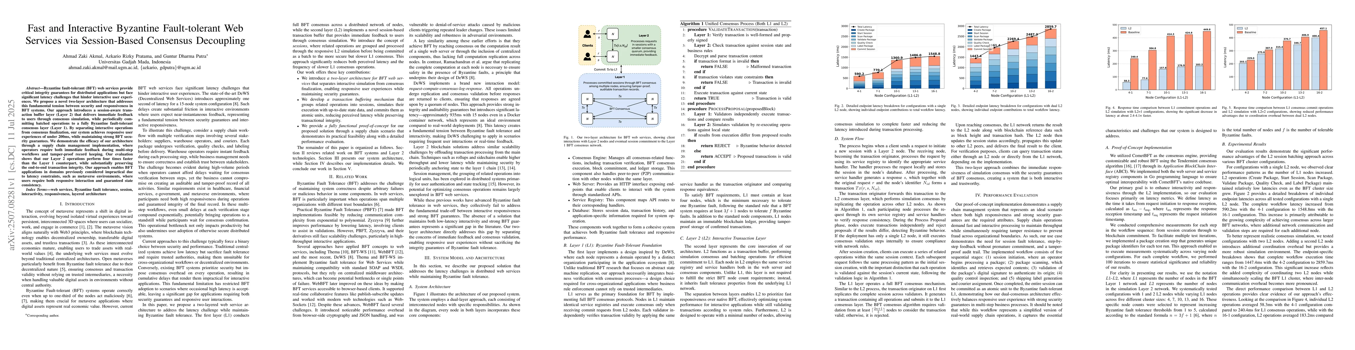 Byzantine fault-tolerant (BFT) web services provide critical integrity guarantees for distributed applications but face significant latency challenges that hinder interactive user experiences. We propose a novel two-layer architecture that addresses this fundamental tension between security and responsiveness in BFT systems. Our approach introduces a session-aware transaction buffer layer (Layer 2) that delivers immediate feedback to users through consensus simulation, while periodically committing batched operations to a fully Byzantine fault-tolerant consensus layer (Layer 1). By separating interactive operations from consensus finalization, our system achieves responsive user experiences of under 200ms, while maintaining strong BFT security guarantees. We demonstrate the efficacy of our architecture through a supply chain management implementation, where operators require both immediate feedback during multi-step workflows and tamper-proof record keeping. Our evaluation shows that our Layer 2 operations perform four times faster than the Layer 1 counterpart, while substantially preserving the end-to-end transaction integrity. Our approach enables BFT applications in domains previously considered impractical due to latency constraints, such as metaverse environments, where users require both responsive interaction and guaranteed state consistency.