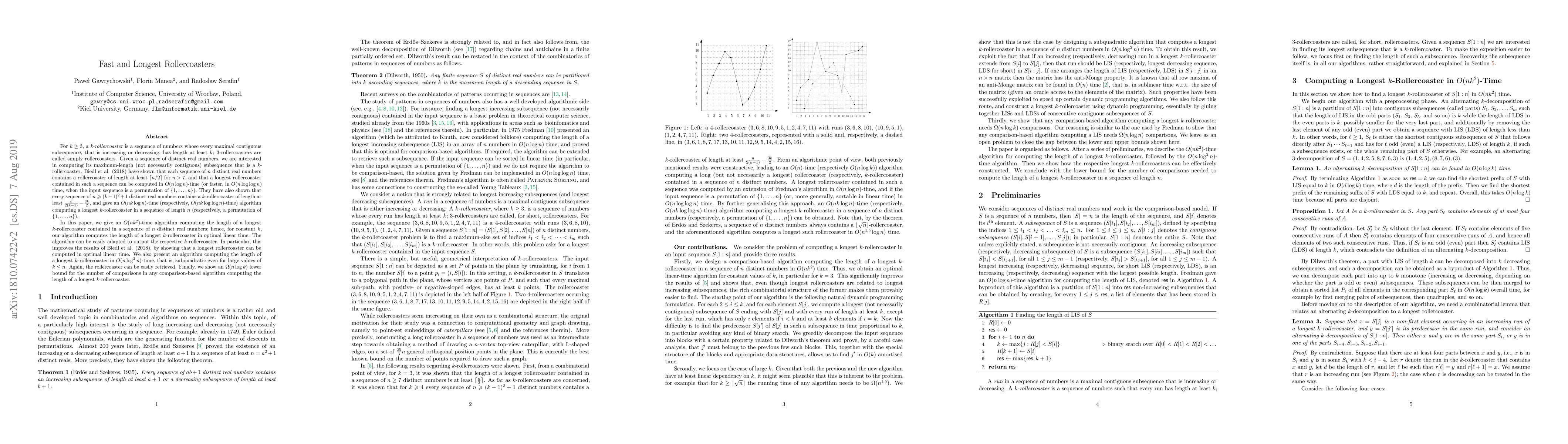 For $k\geq 3$, a k-rollercoaster is a sequence of numbers whose every maximal contiguous subsequence, that is increasing or decreasing, has length at least $k$; $3$-rollercoasters are called simply rollercoasters. Given a sequence of distinct numbers, we are interested in computing its maximum-length (not necessarily contiguous) subsequence that is a $k$-rollercoaster. Biedl et al. [ICALP 2018] have shown that each sequence of $n$ distinct real numbers contains a rollercoaster of length at least $\lceil n/2\rceil$ for $n>7$, and that a longest rollercoaster contained in such a sequence can be computed in $O(n\log n)$-time. They have also shown that every sequence of $n\geq (k-1)^2+1$ distinct real numbers contains a $k$-rollercoaster of length at least $\frac{n}{2(k-1)}-\frac{3k}{2}$, and gave an $O(nk\log n)$-time algorithm computing a longest $k$-rollercoaster in a sequence of length $n$. In this paper, we give an $O(nk^2)$-time algorithm computing the length of a longest $k$-rollercoaster contained in a sequence of $n$ distinct real numbers; hence, for constant $k$, our algorithm computes the length of a longest $k$-rollercoaster in optimal linear time. The algorithm can be easily adapted to output the respective $k$-rollercoaster. In particular, this improves the results of Biedl et al. [ICALP 2018], by showing that a longest rollercoaster can be computed in optimal linear time. We also present an algorithm computing the length of a longest $k$-rollercoaster in $O(n \log^2 n)$-time, that is, subquadratic even for large values of $k\leq n$. Again, the rollercoaster can be easily retrieved. Finally, we show an $\Omega(n \log k)$ lower bound for the number of comparisons in any comparison-based algorithm computing the length of a longest $k$-rollercoaster.