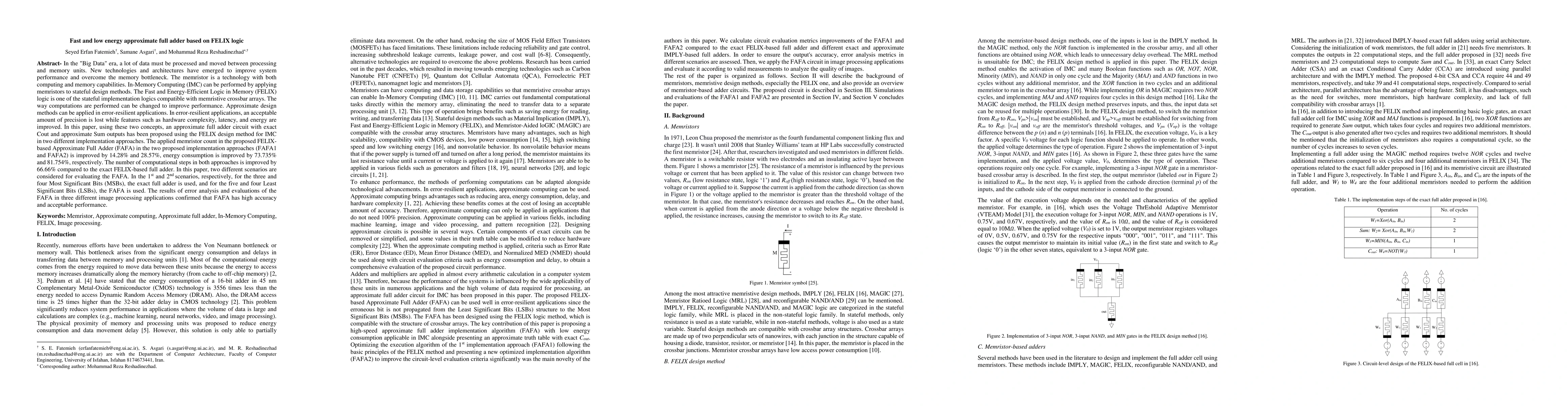 A new approximate full adder circuit using FELIX logic improves energy efficiency by 73.74% and reduces computational steps by 66.66%, making it suitable for error-resilient applications in image processing and other areas with high data volume.