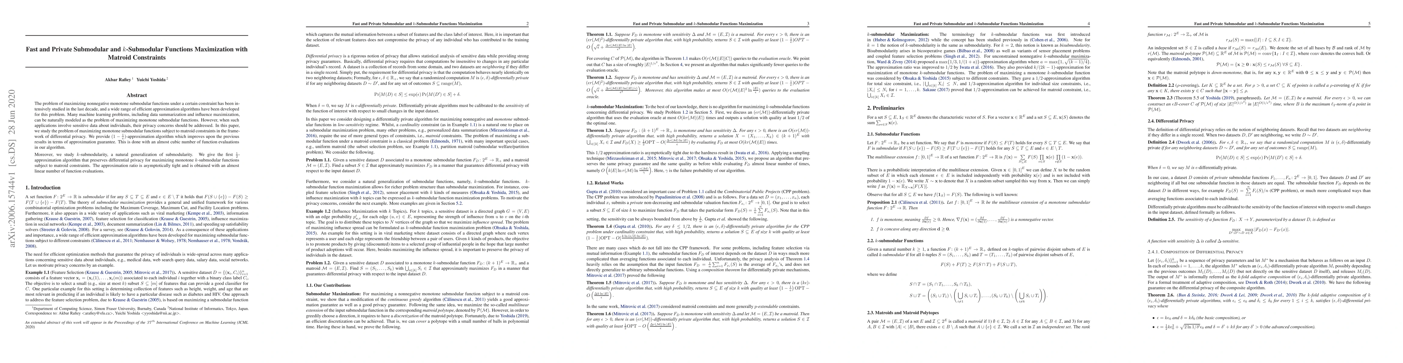 The problem of maximizing nonnegative monotone submodular functions under a certain constraint has been intensively studied in the last decade, and a wide range of efficient approximation algorithms have been developed for this problem. Many machine learning problems, including data summarization and influence maximization, can be naturally modeled as the problem of maximizing monotone submodular functions. However, when such applications involve sensitive data about individuals, their privacy concerns should be addressed. In this paper, we study the problem of maximizing monotone submodular functions subject to matroid constraints in the framework of differential privacy. We provide $(1-\frac{1}{\mathrm{e}})$-approximation algorithm which improves upon the previous results in terms of approximation guarantee. This is done with an almost cubic number of function evaluations in our algorithm. Moreover, we study $k$-submodularity, a natural generalization of submodularity. We give the first $\frac{1}{2}$-approximation algorithm that preserves differential privacy for maximizing monotone $k$-submodular functions subject to matroid constraints. The approximation ratio is asymptotically tight and is obtained with an almost linear number of function evaluations.