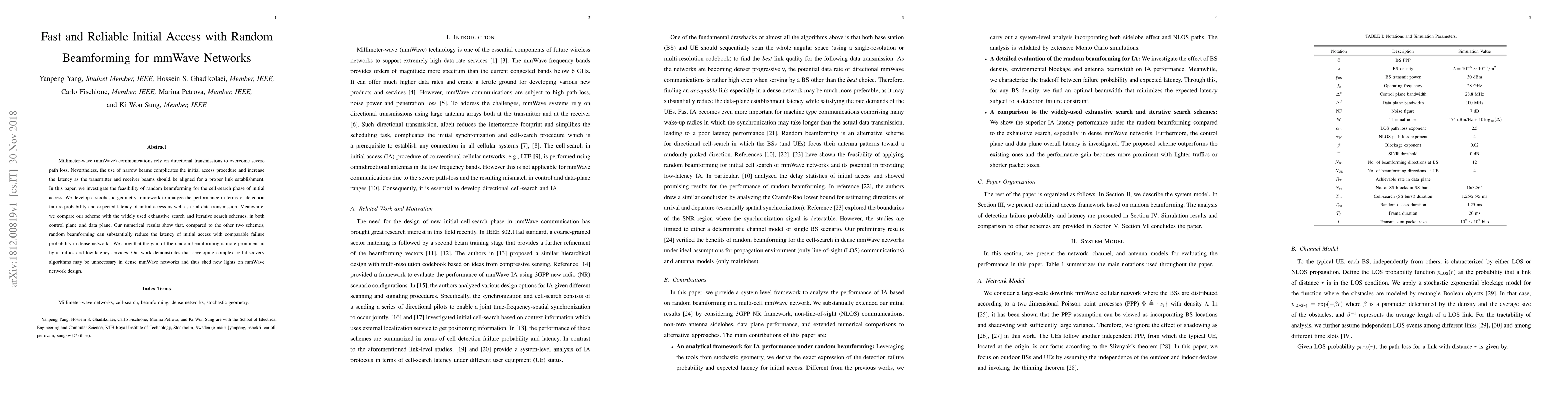 This paper explores random beamforming for initial access in mmWave networks, demonstrating that it can significantly reduce latency compared to exhaustive and iterative search methods while maintaining comparable detection failure probability, especially beneficial in dense networks and light traffic scenarios. The findings suggest that complex cell-discovery algorithms may not be necessary in such settings.