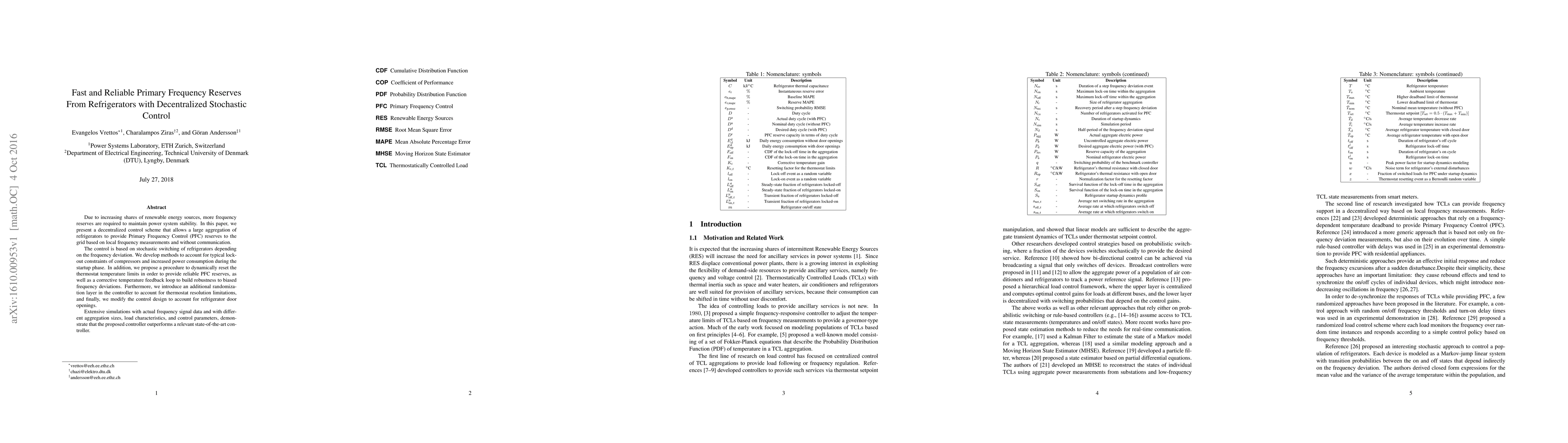 This paper proposes a decentralized stochastic control scheme for aggregating refrigerators to provide Primary Frequency Control reserves to the grid, leveraging local frequency measurements without communication. The method includes strategies to handle compressor lockouts, startup power consumption, and thermostat resets, ensuring reliable and robust frequency control.