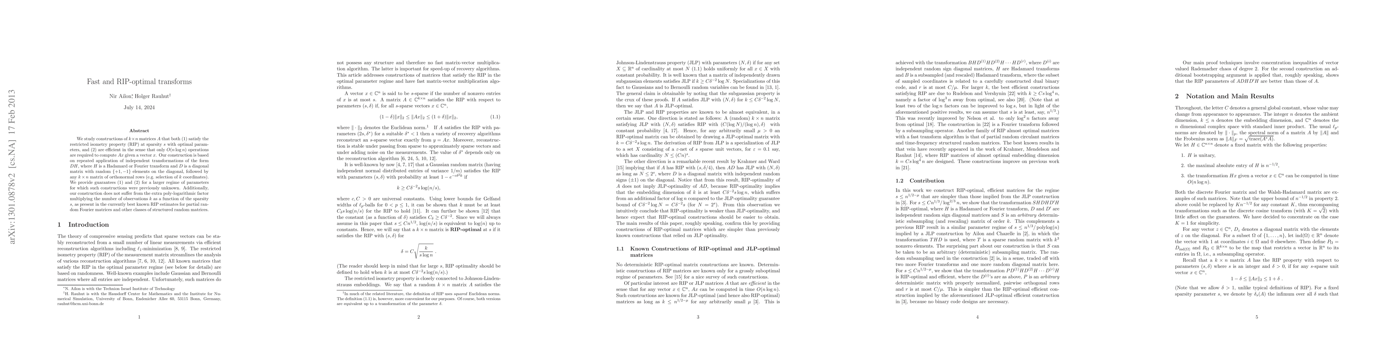 This research paper introduces a new method for creating $k imes n$ matrices that satisfy the restricted isometry property with optimal parameters while requiring only $O(n extlog n)$ operations to compute.