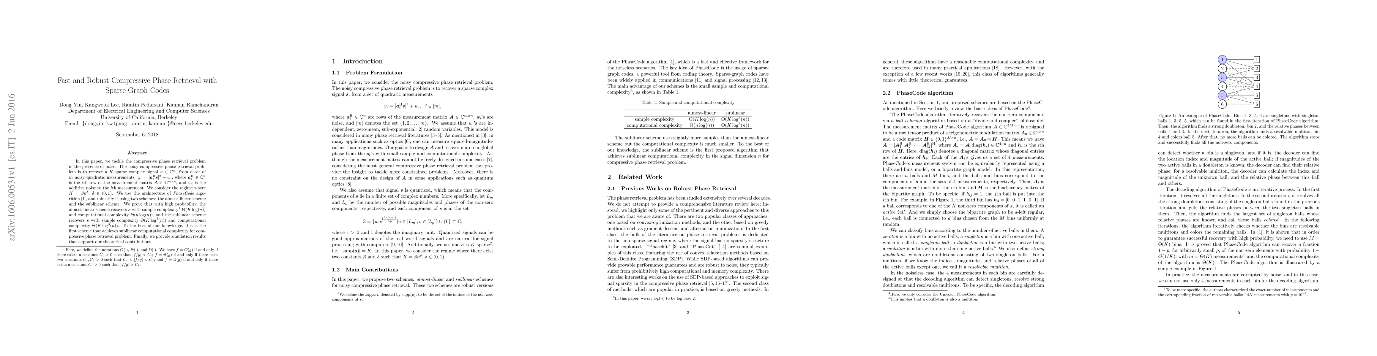 The paper introduces robustified PhaseCode algorithms (almost-linear and sublinear schemes) for efficient and reliable compressive phase retrieval in the presence of noise.
