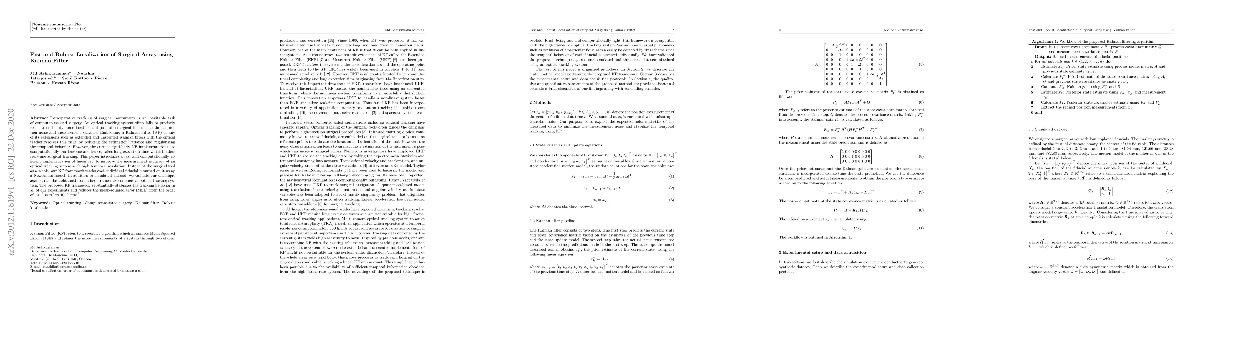 This paper presents a computationally efficient Kalman Filter (KF) implementation for enhancing the precision of optical tracking systems in surgical instrument localization. By tracking individual fiducial markers instead of the whole tool, the method significantly reduces mean-squared error from $10^{-2}$ $mm^{2}$ to $10^{-4}$ $mm^{2}$, ensuring real-time, robust, and accurate intraoperative tracking.