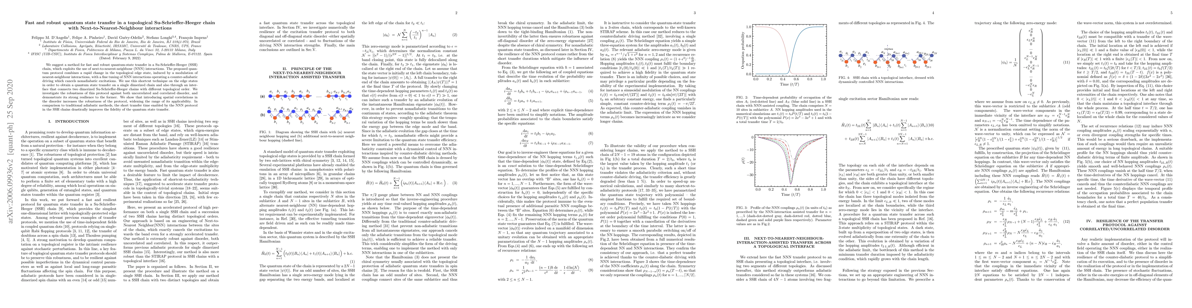 We suggest a method for fast and robust quantum-state transfer in a Su-Schrieffer-Heeger (SSH) chain, which exploits the use of next-to-nearest-neighbour (NNN) interactions. The proposed quantum protocol combines a rapid change in one of the topological edge states, induced by a modulation of nearest-neighbour interactions, with a fine tuning of NNN interactions operating a counter-adiabatic driving. The latter cancels nonadiabatic excitations from the edge state multiplicity to the energy bands. We use this shortcut technique for topological pumping of edge states on a single dimerized chain and also through an interface that connects two dimerized Su-Schrieffer-Heeger chains with different topological order. We investigate the robustness of this protocol against both uncorrelated and correlated disorder, and demonstrate its strong resilience to the former in comparison to traditional adiabatic protocols for topological chains. We show that introducing spatial correlations in the disorder increases the robustness of the protocol, widening the range of its applicability.
