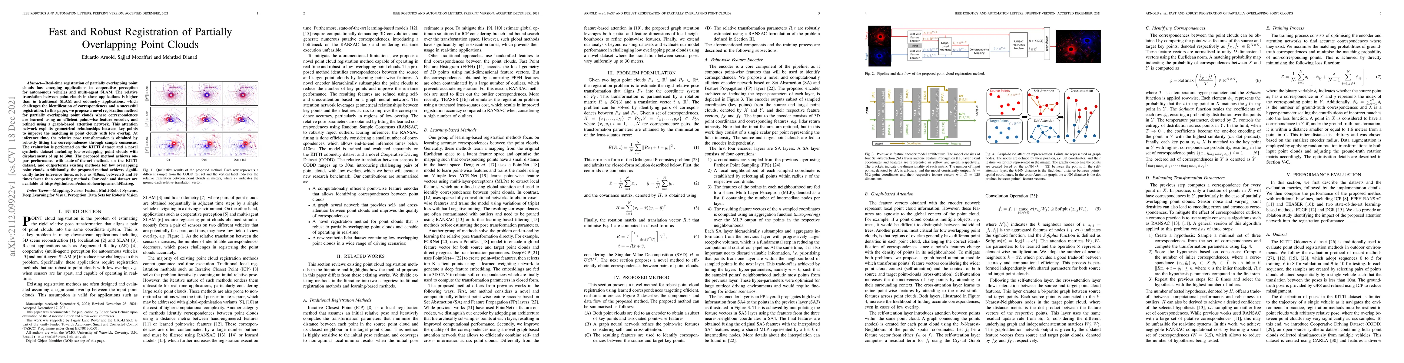 This paper presents a novel registration method for partially overlapping point clouds using an efficient feature encoder and a graph-based attention network to identify correspondences, achieving state-of-the-art performance and significantly faster inference times on the KITTI dataset and a new synthetic dataset.