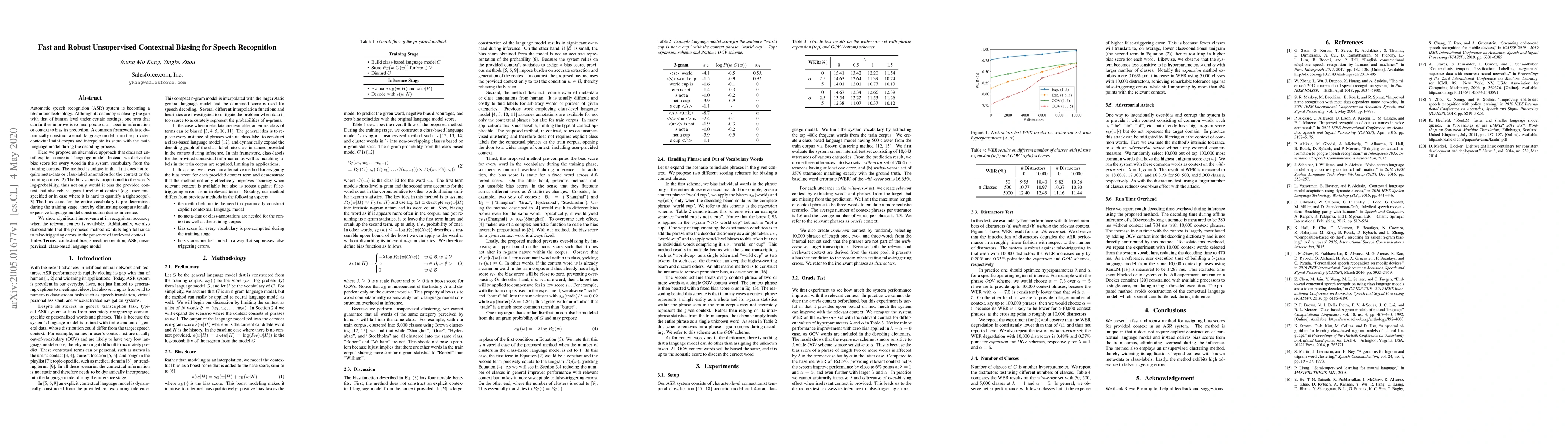 This research paper proposes a novel approach to improve speech recognition accuracy by deriving bias scores for every word in the system vocabulary from the training corpus, eliminating the need for explicit contextual language models.
