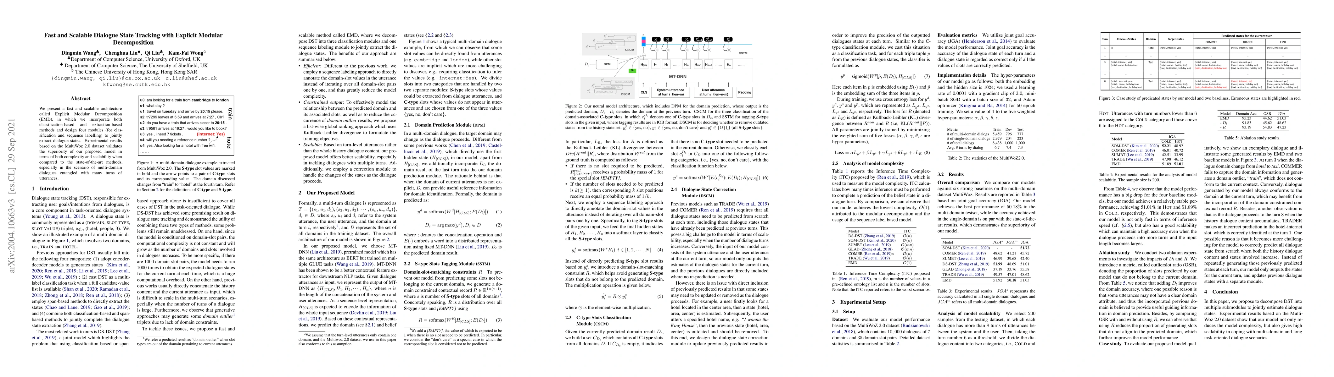 We present a fast and scalable architecture called Explicit Modular Decomposition (EMD), in which we incorporate both classification-based and extraction-based methods and design four modules (for classification and sequence labelling) to jointly extract dialogue states. Experimental results based on the MultiWoz 2.0 dataset validates the superiority of our proposed model in terms of both complexity and scalability when compared to the state-of-the-art methods, especially in the scenario of multi-domain dialogues entangled with many turns of utterances.