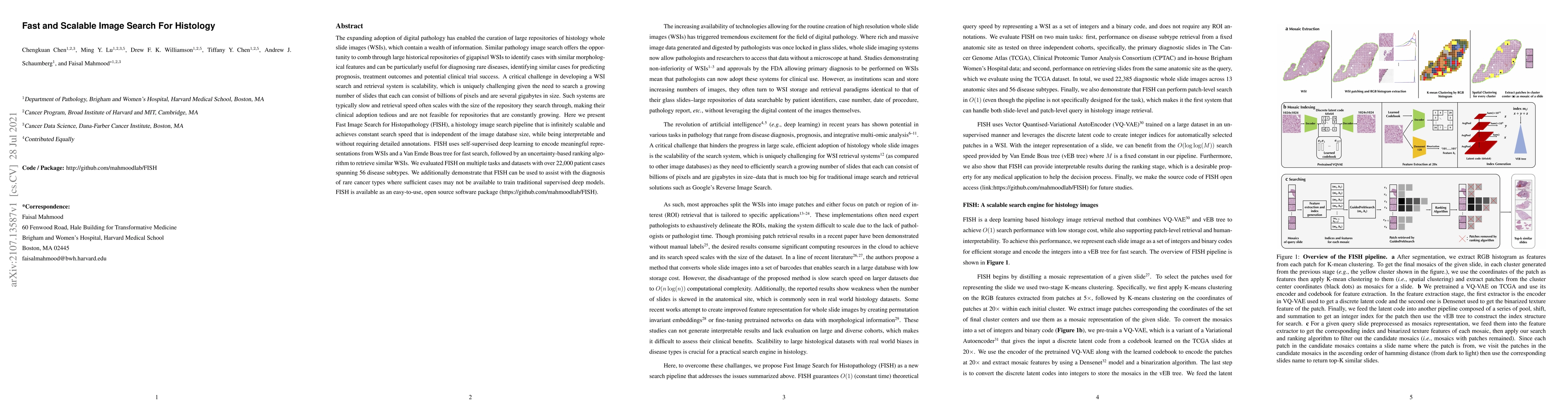 Researchers developed Fast Image Search for Histopathology (FISH), a scalable image search pipeline that uses self-supervised deep learning to retrieve similar histology images from large repositories, enabling faster diagnosis of rare diseases.