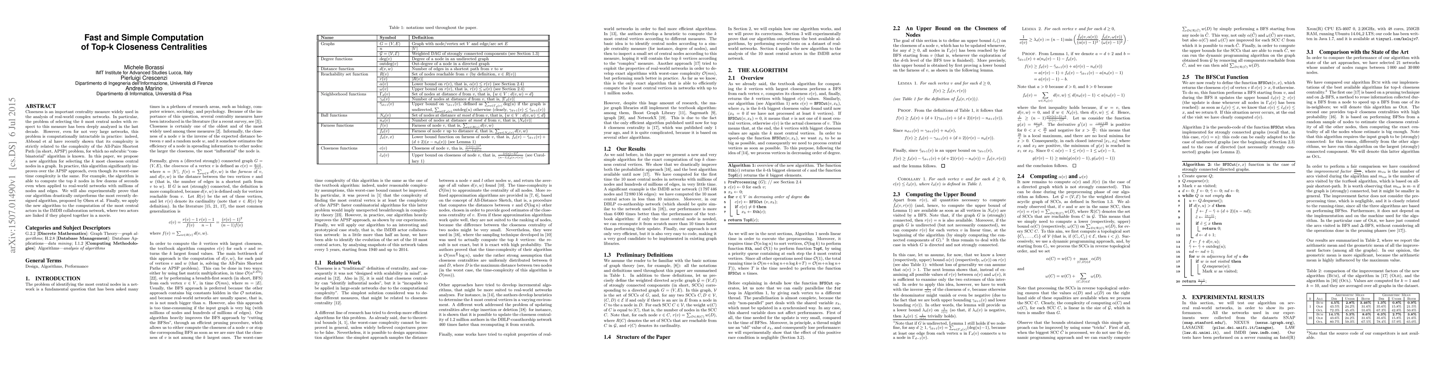This paper presents a new algorithm for efficiently computing the top-k most closeness central nodes in large graphs, significantly outperforming previous methods in practical scenarios, despite having the same worst-case complexity as APSP. It is demonstrated to handle networks with millions of nodes and edges in mere seconds, and outperforms Olsen et al.'s algorithm. The method is applied to identify central actors in the IMDB collaboration network.