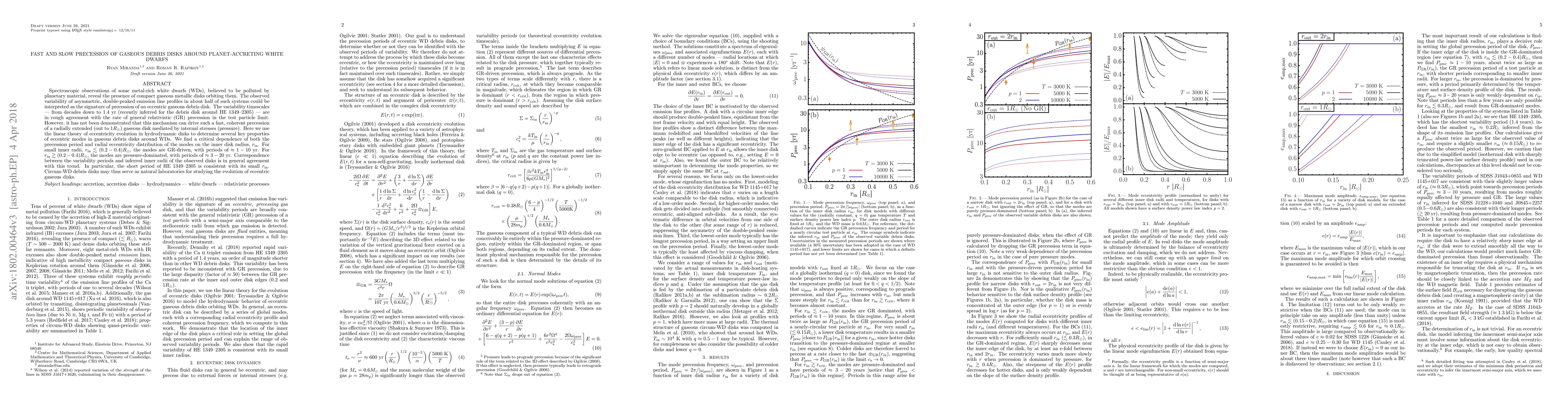This paper investigates the precession mechanisms of gaseous debris disks around planet-accreting white dwarfs, finding that the inner disk radius determines whether general relativistic or pressure-driven forces dominate the precession, with implications for observed variability periods.