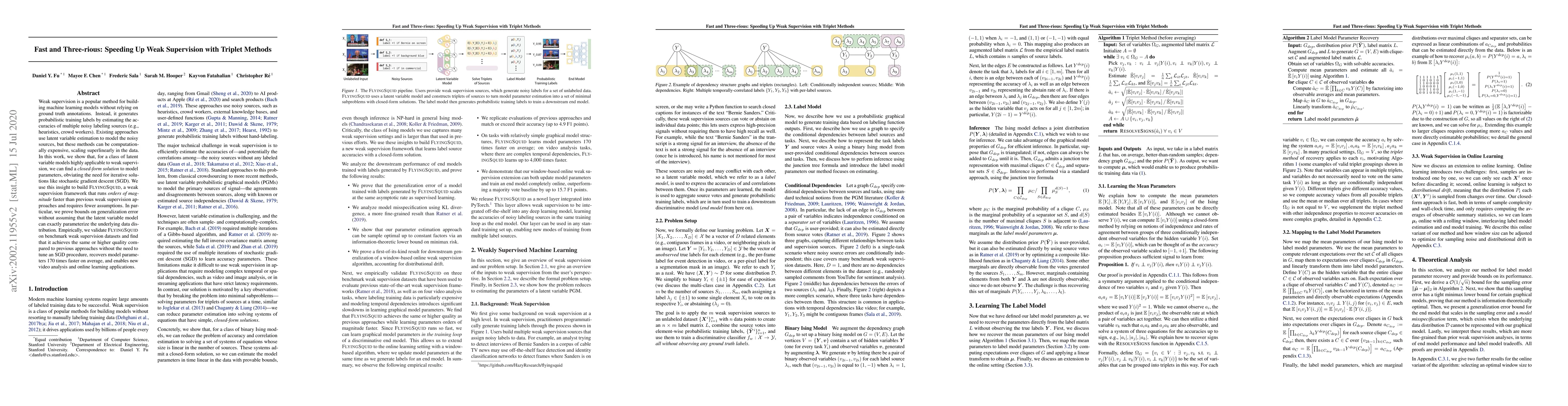 Researchers developed a new method called FlyingSquid that uses closed-form solutions to speed up weak supervision in machine learning, achieving significant performance gains without requiring complex assumptions or iterative training procedures.
