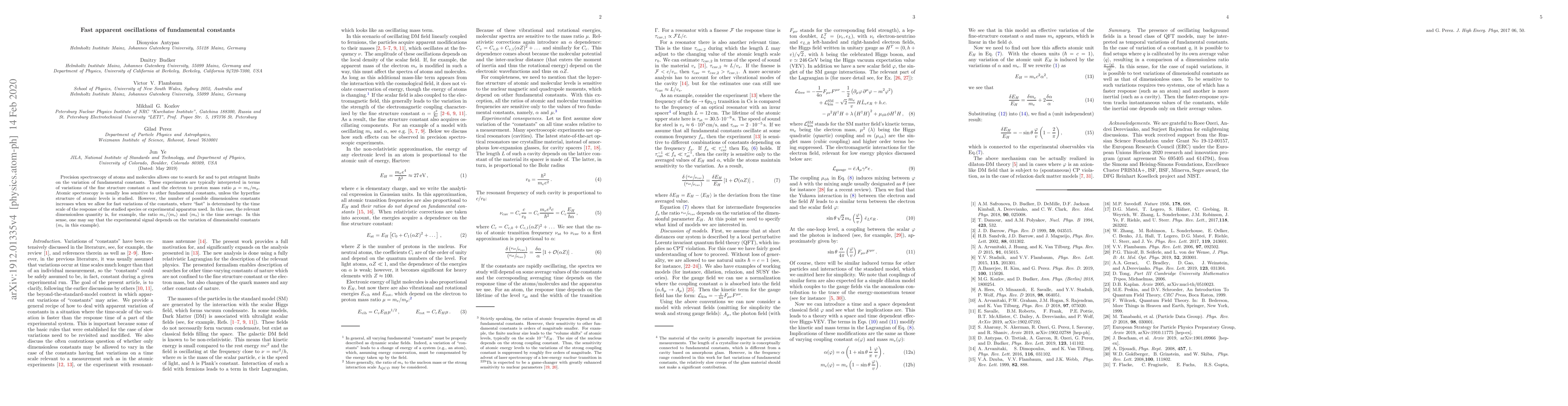 This paper explores precision spectroscopy's ability to detect fast apparent oscillations in fundamental constants, focusing on the fine structure constant $\alpha$ and the electron to proton mass ratio $\mu$. It suggests that fast variations can reveal more dimensionless constants than typically observed, highlighting the importance of considering time-averaged values in experimental signals.