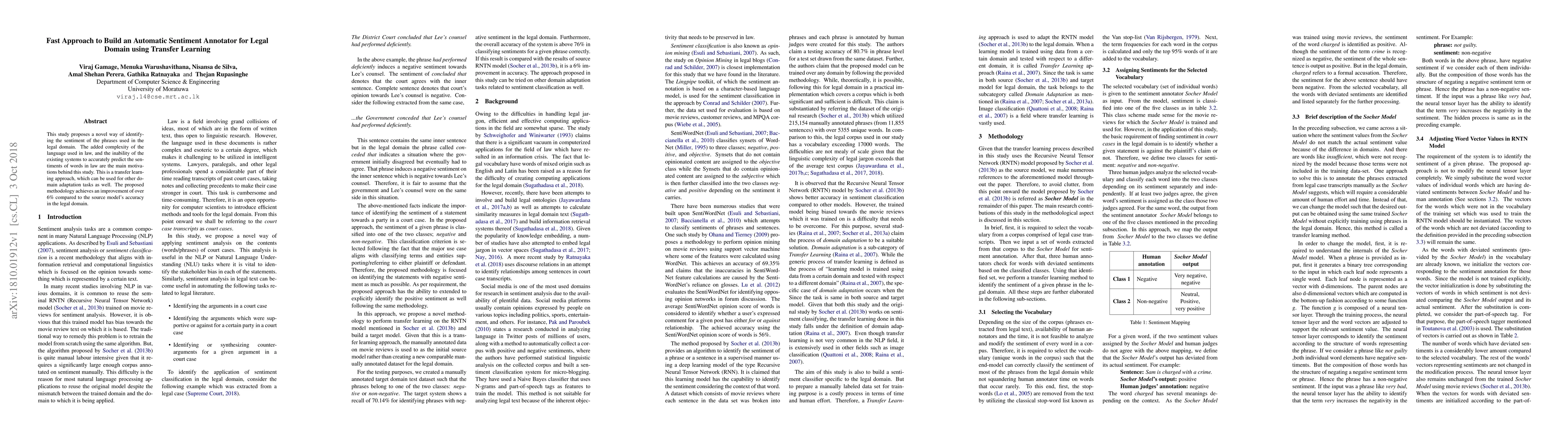 This study introduces a transfer learning method for automatically annotating sentiment in legal language, addressing the limitations of existing systems. The approach improves accuracy by over 6% compared to the source model, demonstrating its effectiveness for domain-specific sentiment analysis.