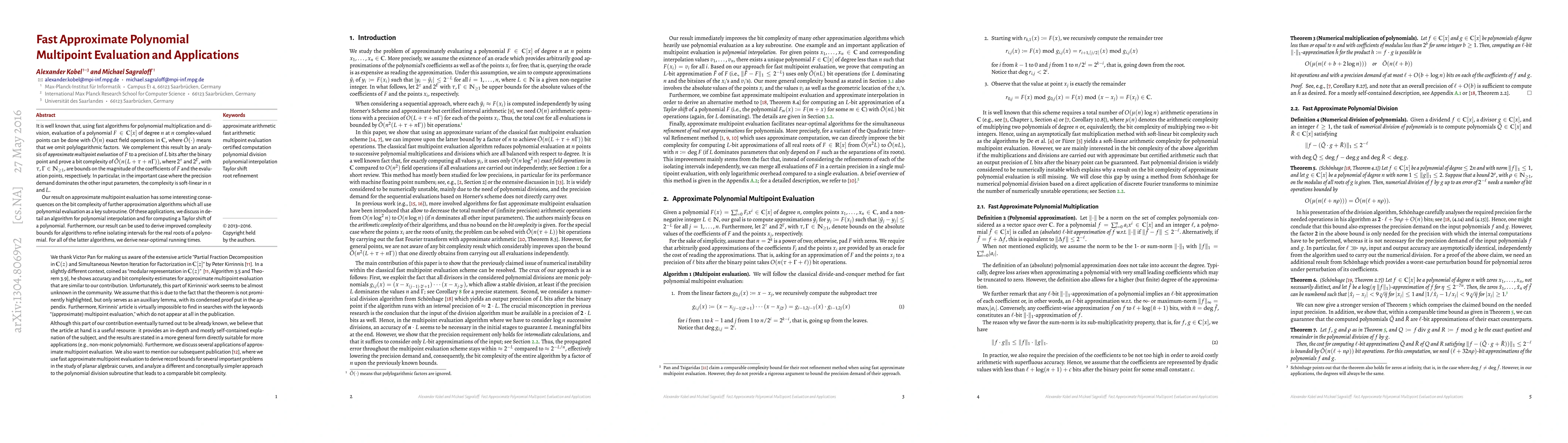 It is well known that, using fast algorithms for polynomial multiplication and division, evaluation of a polynomial $F \in \mathbb{C}[x]$ of degree $n$ at $n$ complex-valued points can be done with $\tilde{O}(n)$ exact field operations in $\mathbb{C},$ where $\tilde{O}(\cdot)$ means that we omit polylogarithmic factors. We complement this result by an analysis of approximate multipoint evaluation of $F$ to a precision of $L$ bits after the binary point and prove a bit complexity of $\tilde{O}(n(L + \tau + n\Gamma)),$ where $2^\tau$ and $2^\Gamma,$ with $\tau, \Gamma \in \mathbb{N}_{\ge 1},$ are bounds on the magnitude of the coefficients of $F$ and the evaluation points, respectively. In particular, in the important case where the precision demand dominates the other input parameters, the complexity is soft-linear in $n$ and $L$. Our result on approximate multipoint evaluation has some interesting consequences on the bit complexity of further approximation algorithms which all use polynomial evaluation as a key subroutine. Of these applications, we discuss in detail an algorithm for polynomial interpolation and for computing a Taylor shift of a polynomial. Furthermore, our result can be used to derive improved complexity bounds for algorithms to refine isolating intervals for the real roots of a polynomial. For all of the latter algorithms, we derive near-optimal running times.