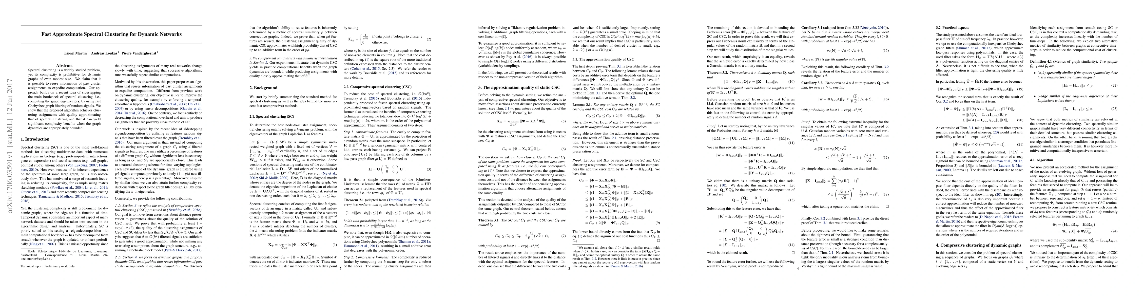 This paper proposes a fast approximate spectral clustering method for dynamic networks by reusing past cluster assignments and leveraging fast Chebyshev graph filtering, achieving clustering quality close to spectral clustering while significantly reducing computational complexity.