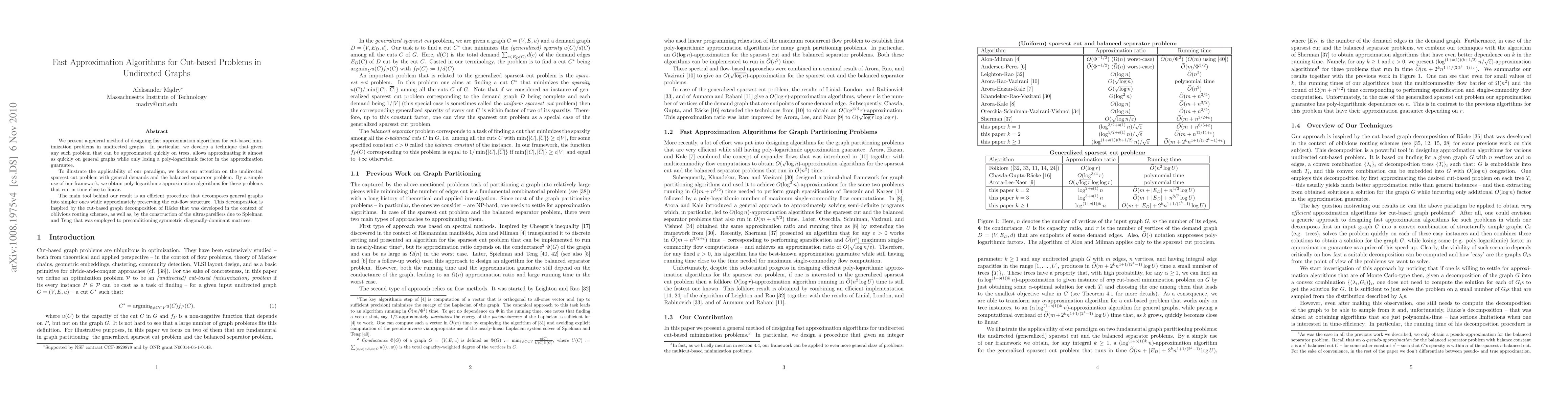 We present a general method of designing fast approximation algorithms for cut-based minimization problems in undirected graphs. In particular, we develop a technique that given any such problem that can be approximated quickly on trees, allows approximating it almost as quickly on general graphs while only losing a poly-logarithmic factor in the approximation guarantee. To illustrate the applicability of our paradigm, we focus our attention on the undirected sparsest cut problem with general demands and the balanced separator problem. By a simple use of our framework, we obtain poly-logarithmic approximation algorithms for these problems that run in time close to linear. The main tool behind our result is an efficient procedure that decomposes general graphs into simpler ones while approximately preserving the cut-flow structure. This decomposition is inspired by the cut-based graph decomposition of R\"acke that was developed in the context of oblivious routing schemes, as well as, by the construction of the ultrasparsifiers due to Spielman and Teng that was employed to preconditioning symmetric diagonally-dominant matrices.