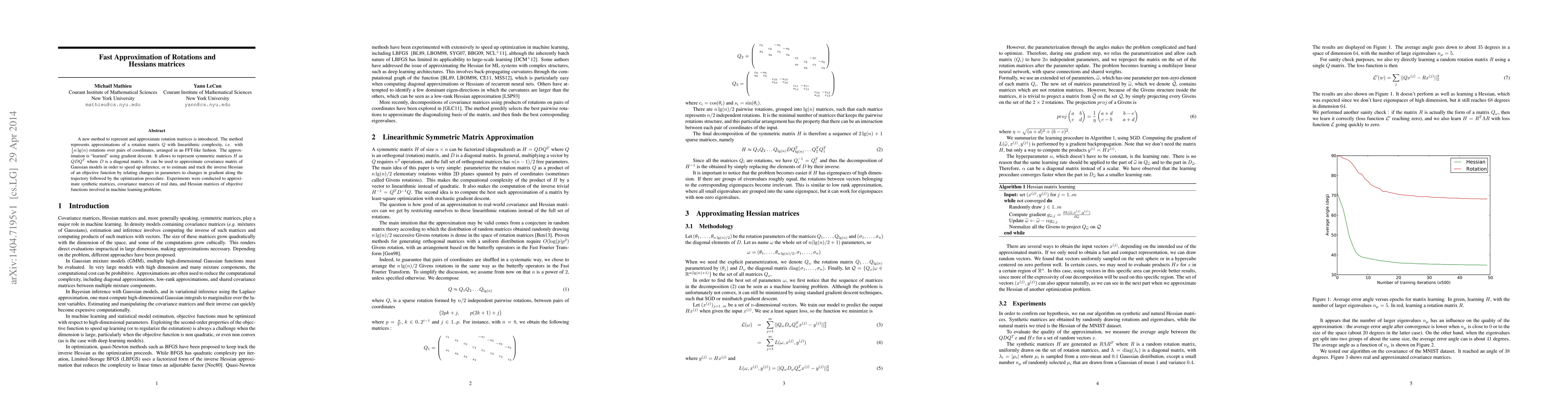 This paper presents an efficient method for approximating rotation matrices and Hessians with linearithmic complexity, using an FFT-like approach. The method leverages gradient descent for learning and can represent Hessians as a product of a rotation matrix and a diagonal matrix, facilitating faster inference in Gaussian models and optimization procedures.