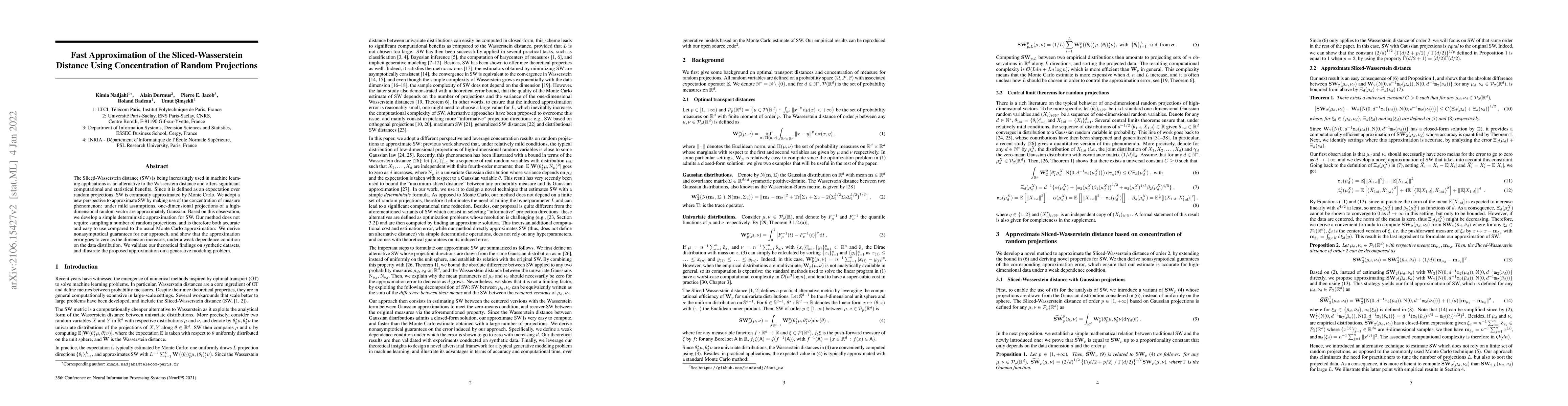 This paper proposes a deterministic approximation for the Sliced-Wasserstein distance using concentration of random projections, avoiding the need for Monte Carlo sampling. The method leverages the concentration phenomenon where high-dimensional projections are approximately Gaussian, leading to an accurate and computationally efficient alternative.