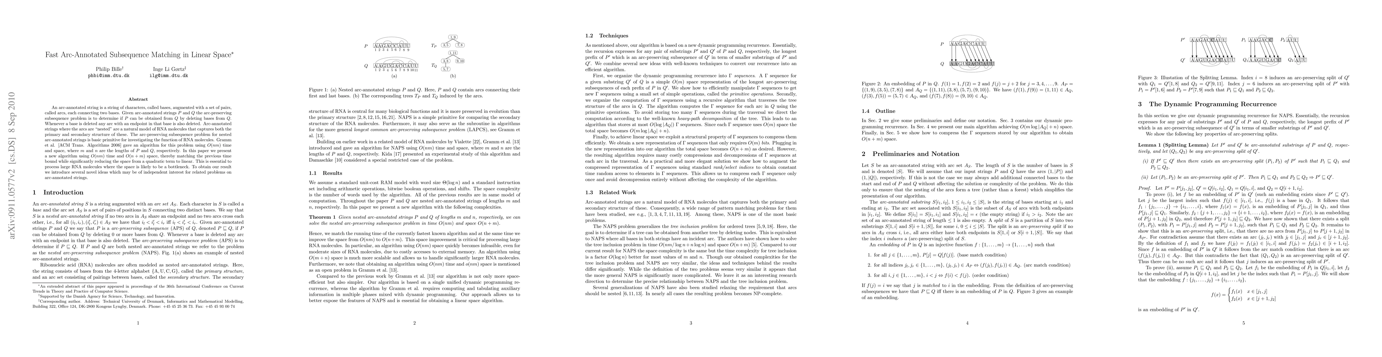 Researchers have developed a new algorithm to solve the arc-preserving subsequence problem in linear space, reducing previous storage requirements from quadratic to linear while maintaining O(nm) time complexity for processing large RNA molecules.