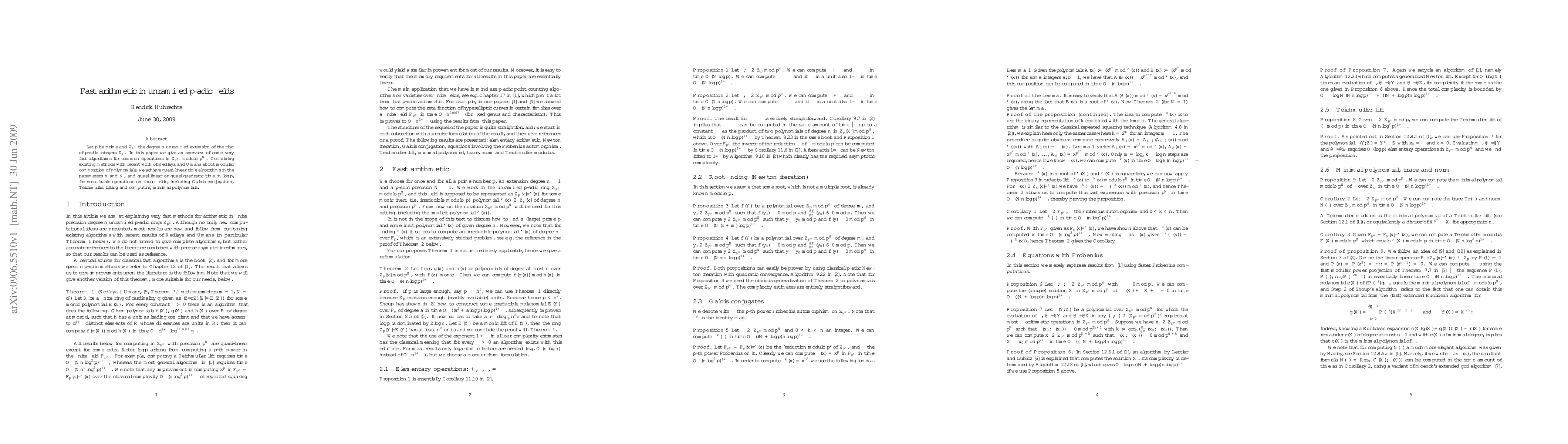 Researchers developed fast algorithms for basic operations in unramified p-adic fields, achieving quasi-linear time complexity in parameters n and N, and quasi-quadratic or quasi-linear time for some operations with a logarithmic factor.