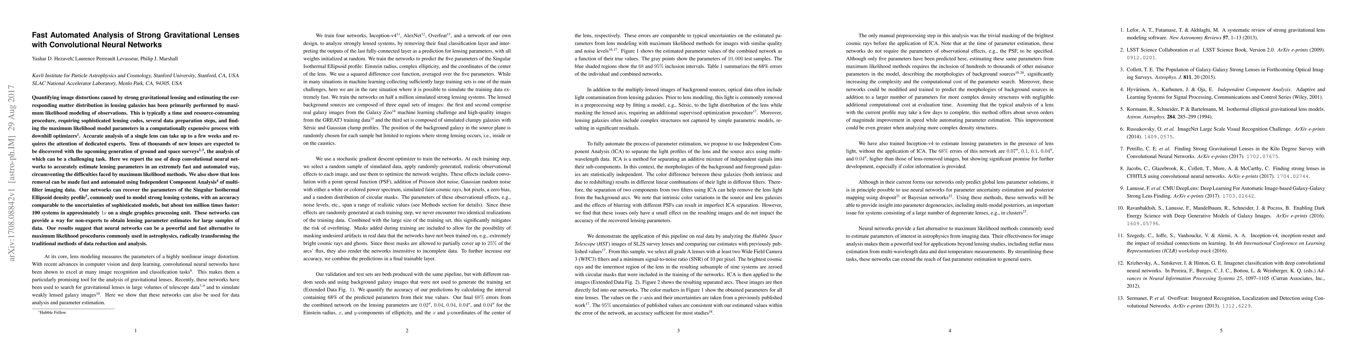 Researchers developed a fast automated analysis method using convolutional neural networks to estimate lensing parameters in strong gravitational lenses, achieving accuracy comparable to sophisticated models but 10 million times faster.