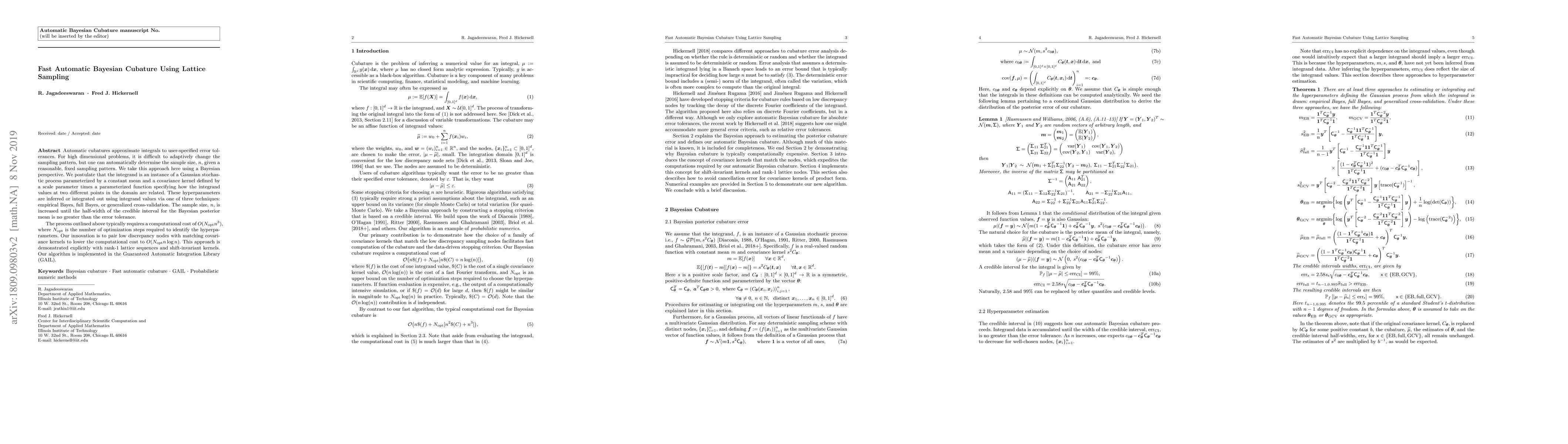 Automatic cubatures approximate multidimensional integrals to user-specified error tolerances. For high dimensional problems, it makes sense to fix the sampling density but determine the sample size, $n$, automatically. Bayesian cubature postulates that the integrand is an instance of a stochastic process. Here we assume a Gaussian process parameterized by a constant mean and a covariance function defined by a scale parameter times a parameterized function specifying how the integrand values at two different points in the domain are related. These parameters are estimated from integrand values or are given non-informative priors. The sample size, $n$, is chosen to make the half-width of the credible interval for the Bayesian posterior mean no greater than the error tolerance. The process just outlined typically requires vector-matrix operations with a computational cost of $O(n^3)$. Our innovation is to pair low discrepancy nodes with matching kernels that lower the computational cost to $O(n \log n)$. This approach is demonstrated using rank-1 lattice sequences and shift-invariant kernels. Our algorithm is implemented in the Guaranteed Automatic Integration Library (GAIL).