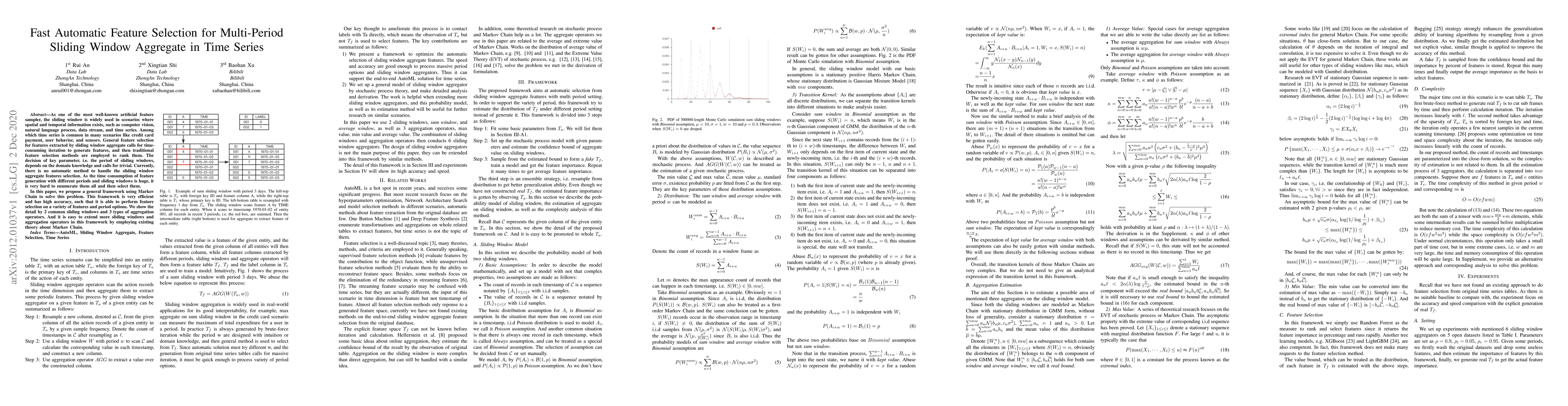 This paper proposes an efficient Markov Chain-based framework for automatic feature selection in multi-period sliding window aggregates for time series data, addressing the time-consuming nature of traditional feature selection methods. The framework is shown to be both accurate and extendable to various sliding windows and aggregation operators.