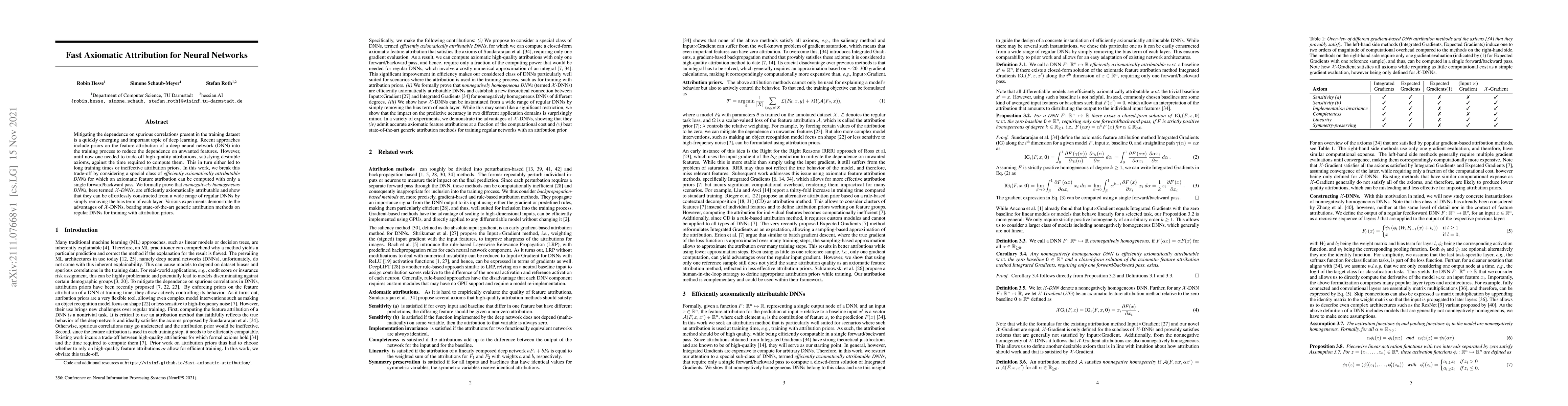 Mitigating the dependence on spurious correlations present in the training dataset is a quickly emerging and important topic of deep learning. Recent approaches include priors on the feature attribution of a deep neural network (DNN) into the training process to reduce the dependence on unwanted features. However, until now one needed to trade off high-quality attributions, satisfying desirable axioms, against the time required to compute them. This in turn either led to long training times or ineffective attribution priors. In this work, we break this trade-off by considering a special class of efficiently axiomatically attributable DNNs for which an axiomatic feature attribution can be computed with only a single forward/backward pass. We formally prove that nonnegatively homogeneous DNNs, here termed $\mathcal{X}$-DNNs, are efficiently axiomatically attributable and show that they can be effortlessly constructed from a wide range of regular DNNs by simply removing the bias term of each layer. Various experiments demonstrate the advantages of $\mathcal{X}$-DNNs, beating state-of-the-art generic attribution methods on regular DNNs for training with attribution priors.