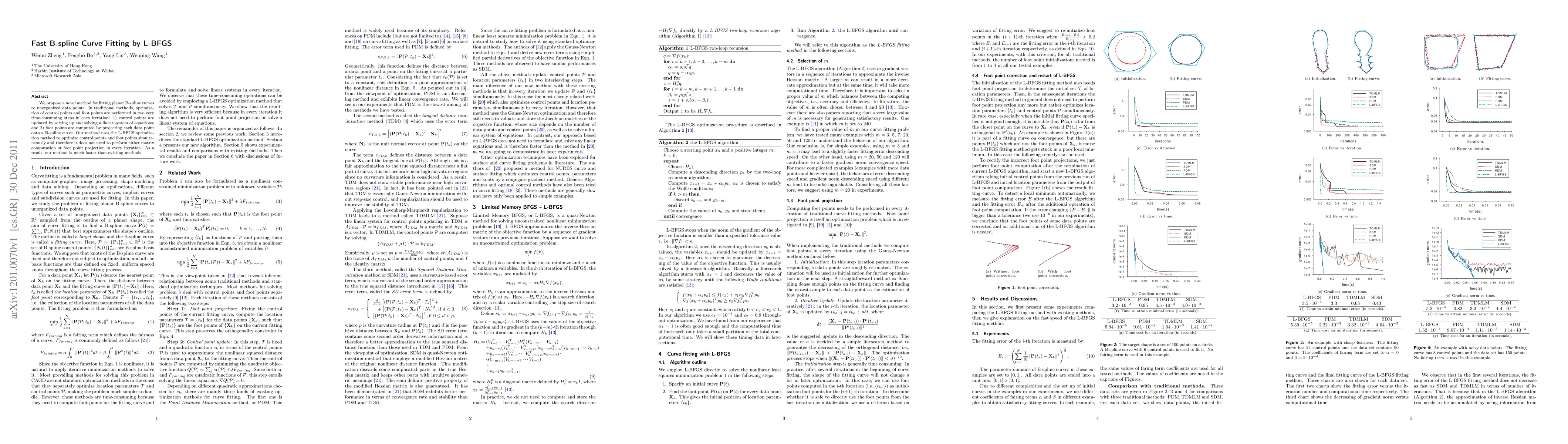 This paper introduces a novel method for fitting B-spline curves to unorganized data points using the L-BFGS optimization technique, allowing simultaneous optimization of control and foot points without iterative matrix computations or projections, significantly speeding up the process compared to traditional methods.