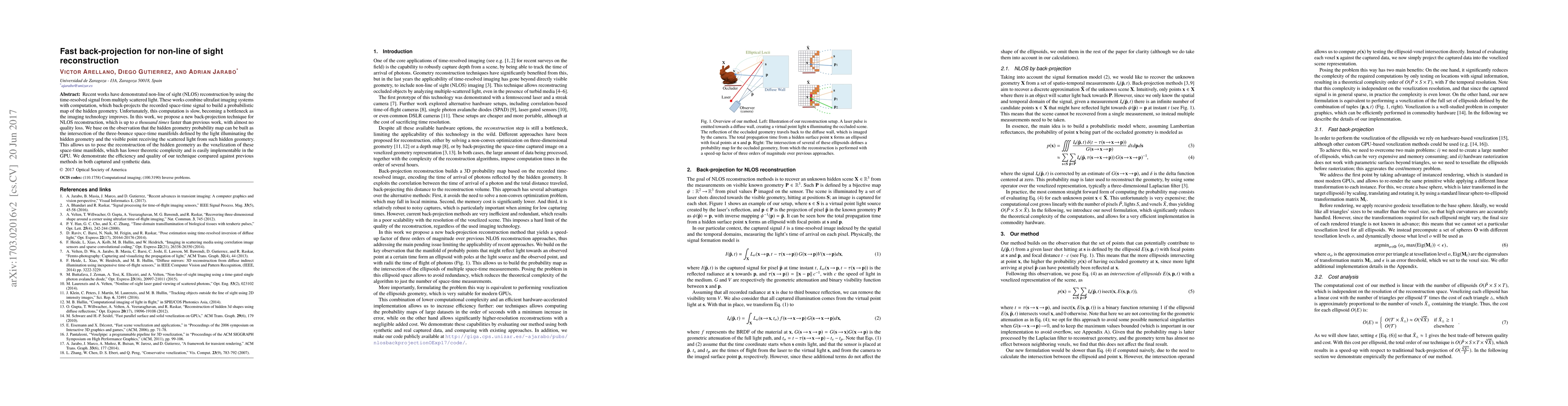 A new back-projection technique for non-line of sight reconstruction is proposed, significantly reducing computation time while maintaining quality, by voxelizing space-time manifolds defined by light illuminating the hidden geometry.