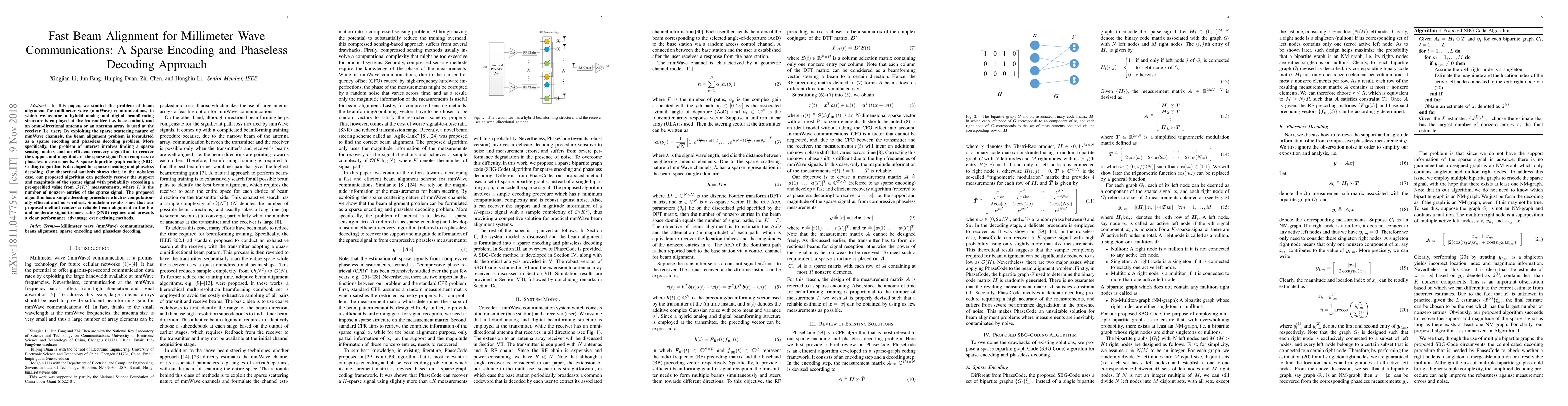 This paper proposes a new approach to beam alignment for millimeter wave communications using sparse encoding and phaseless decoding, achieving reliable performance in low and moderate signal-to-noise ratio regimes.